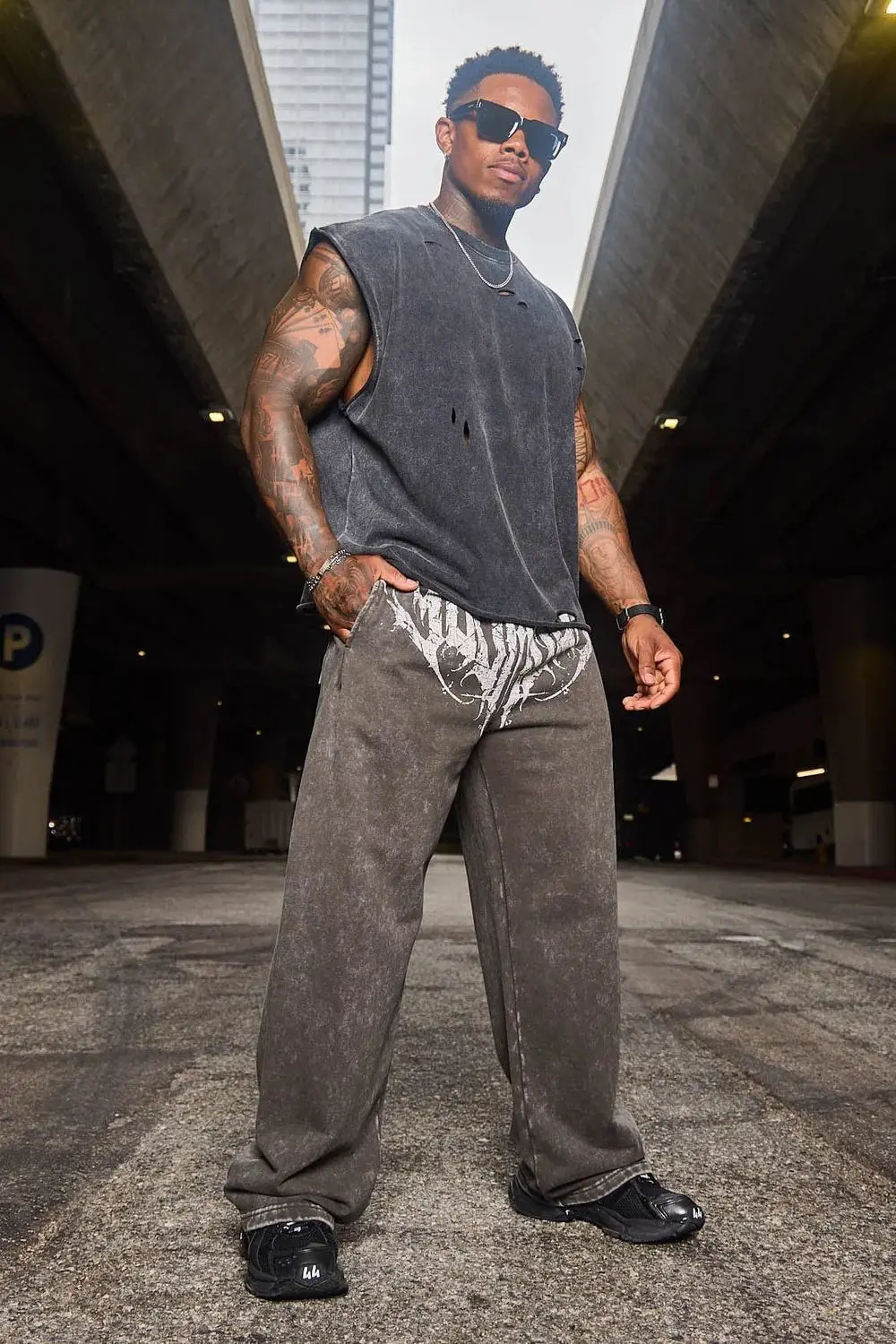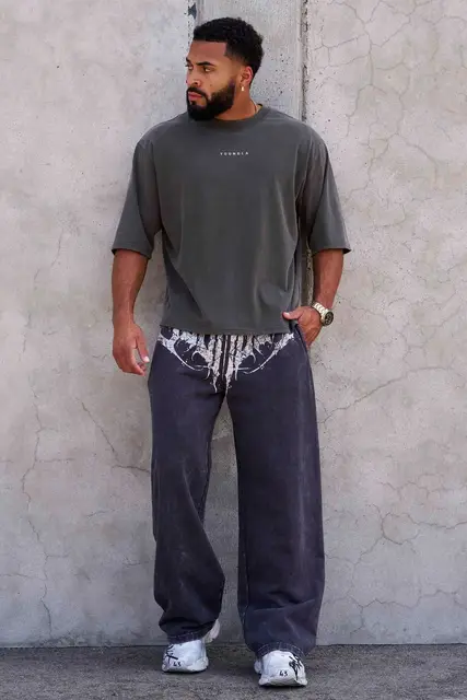 American Style Men's Sports Pants Joggers Muscle Fitness Casual Long Pants Loose Straight Pants Street Fashion Trendy Men's Pant