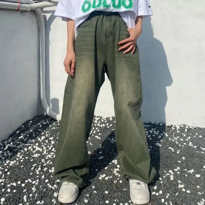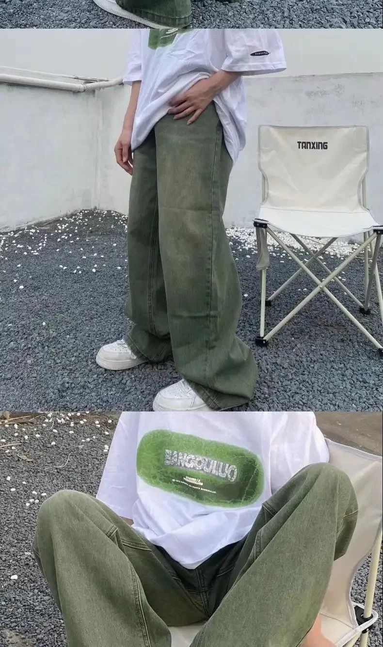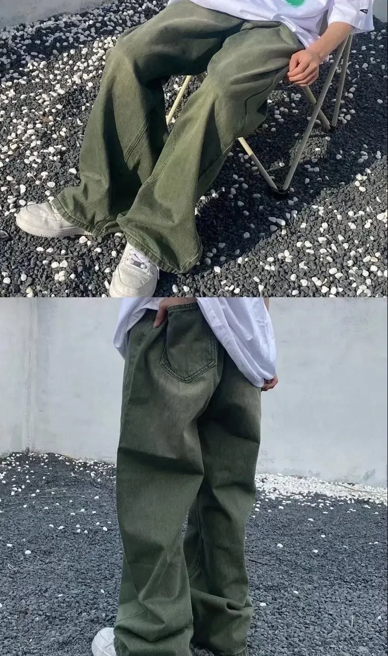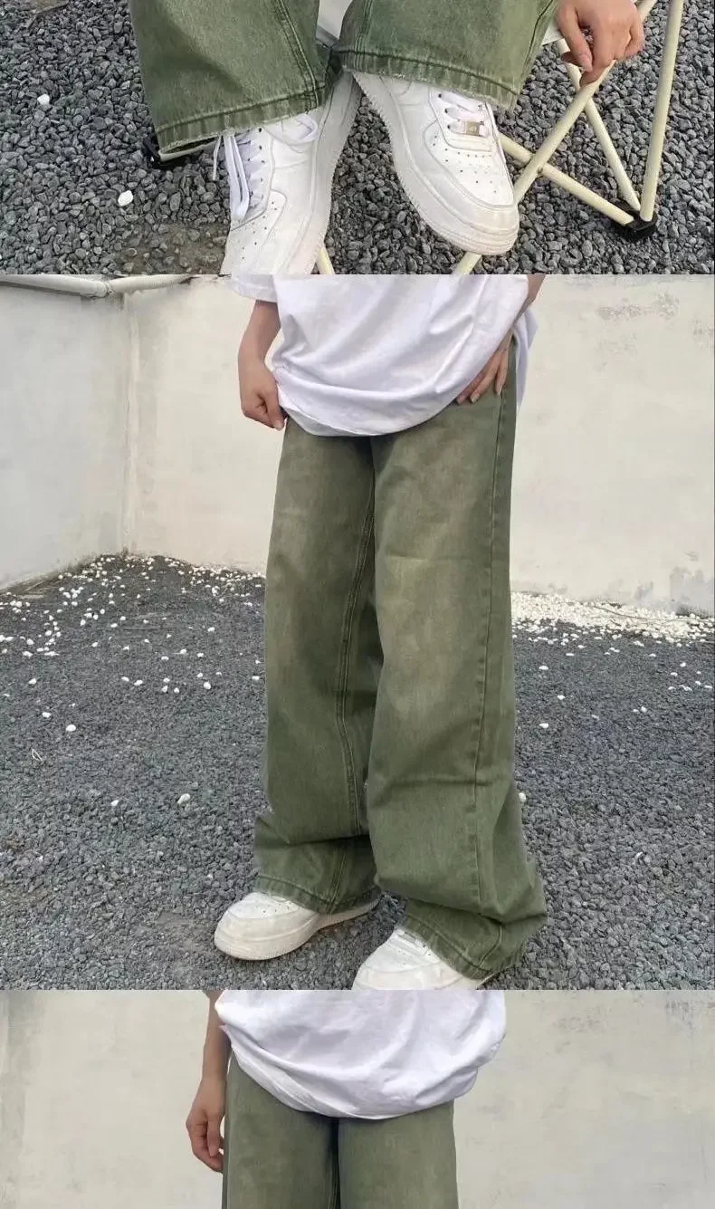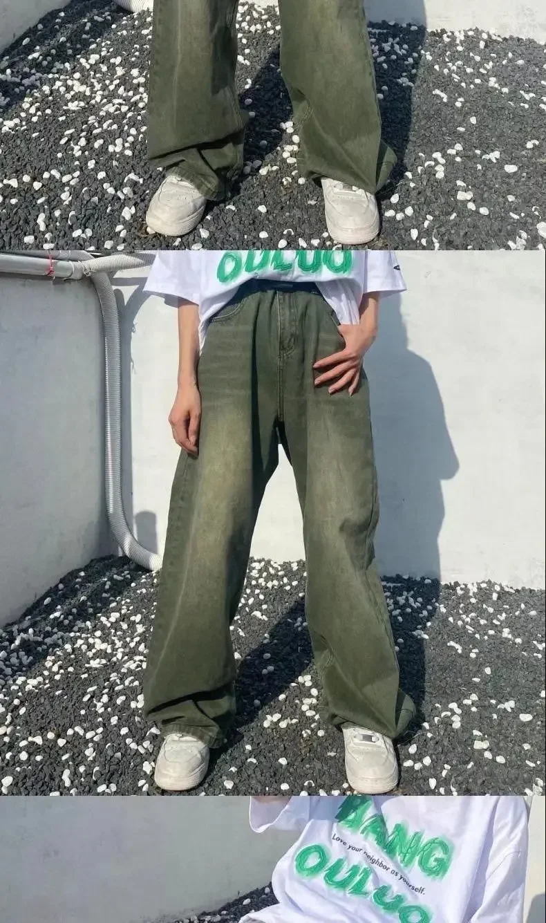 • American Style Trendy Design : Embrace the retro vibe with these trendy American-style green jeans, perfect for both men and women.