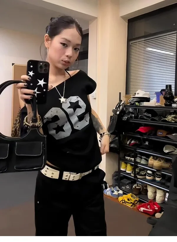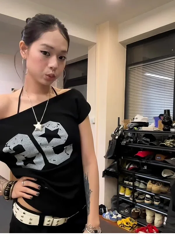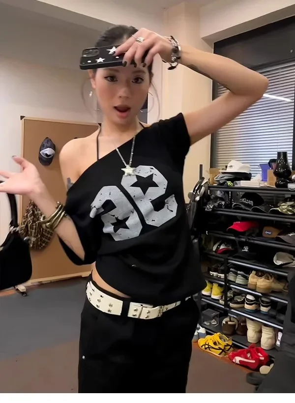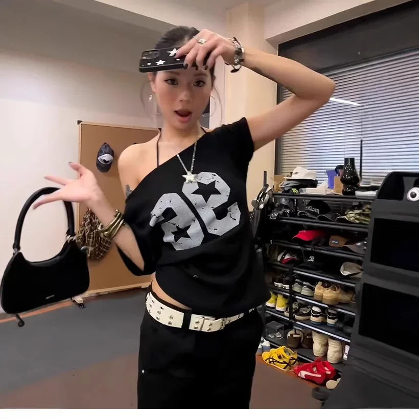 • American Style Design : Embrace the American vibe with this hot girl slant shoulder T-shirt, perfect for summer outings.