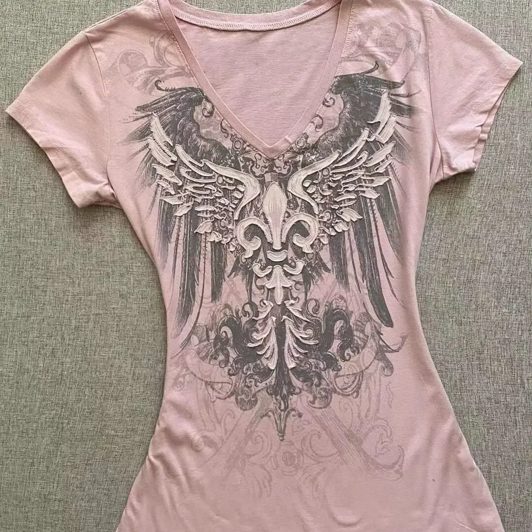 American High Street Trendy Brand Pure Cotton ort Sve Women's T-irt Summer 2025 Design Loose Lazy Sle f Sve Top