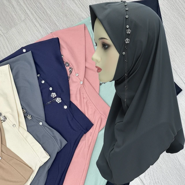 Flower Embroidery Muslim Instant Hijab Women One Piece Amira Chemo Cap Islamic Scarf Cover Turban Headband Shawl Headscarf wrap