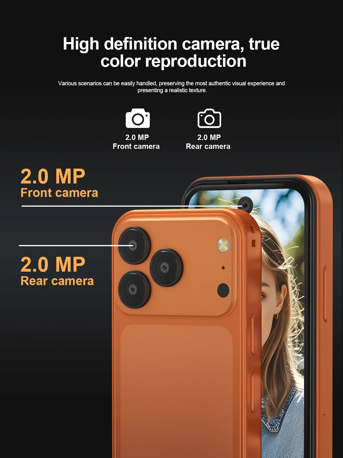 ✔Rear camera 2 MP,front camera 2 MP,high definition camera, true color reproduction