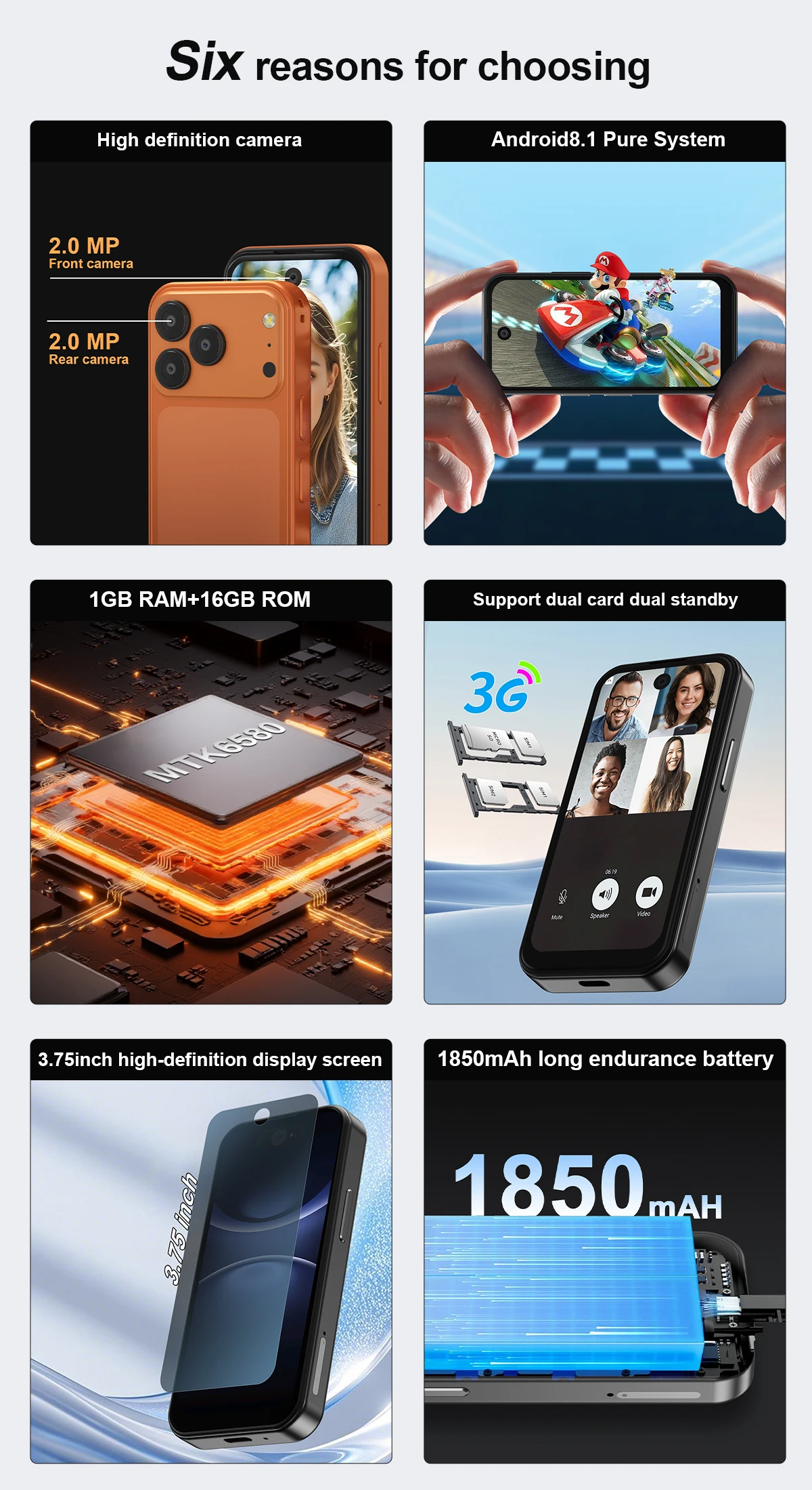 • Camera:Rear camera 2 MP/Front camera 2 MP