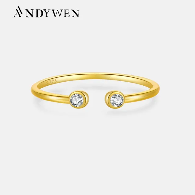 ANDYWEN 925 Sterling Silver Geometric Gold Ring with Baguette Zircon CZ, Modern Irregular Minimalist Fashion Jewelry Gift