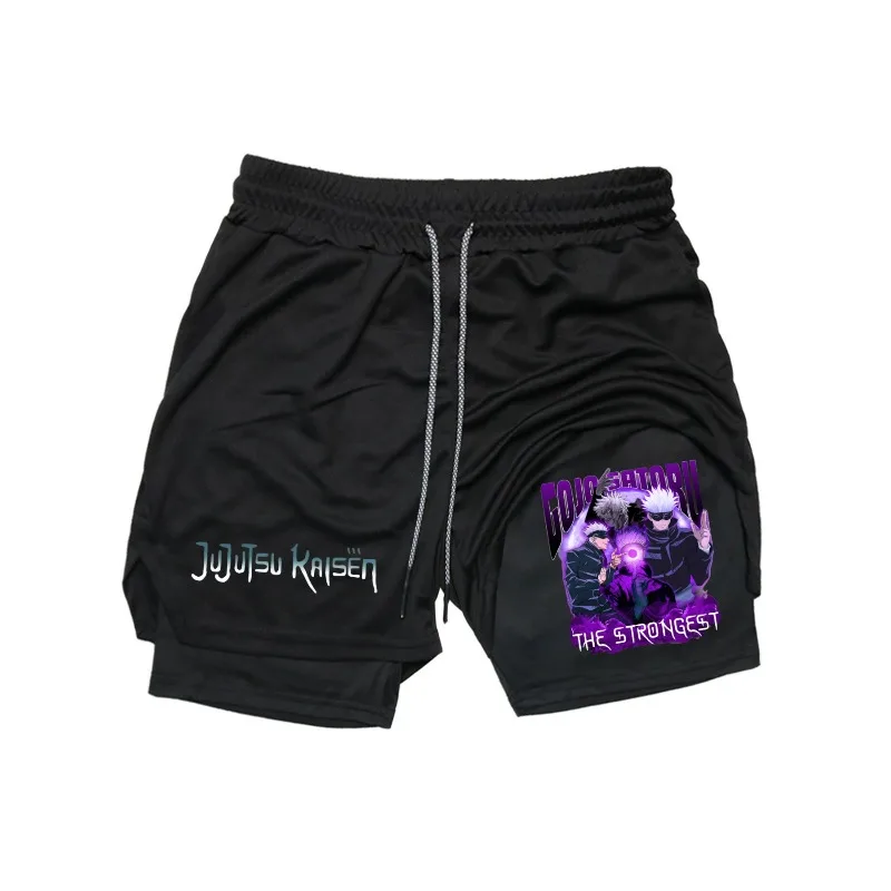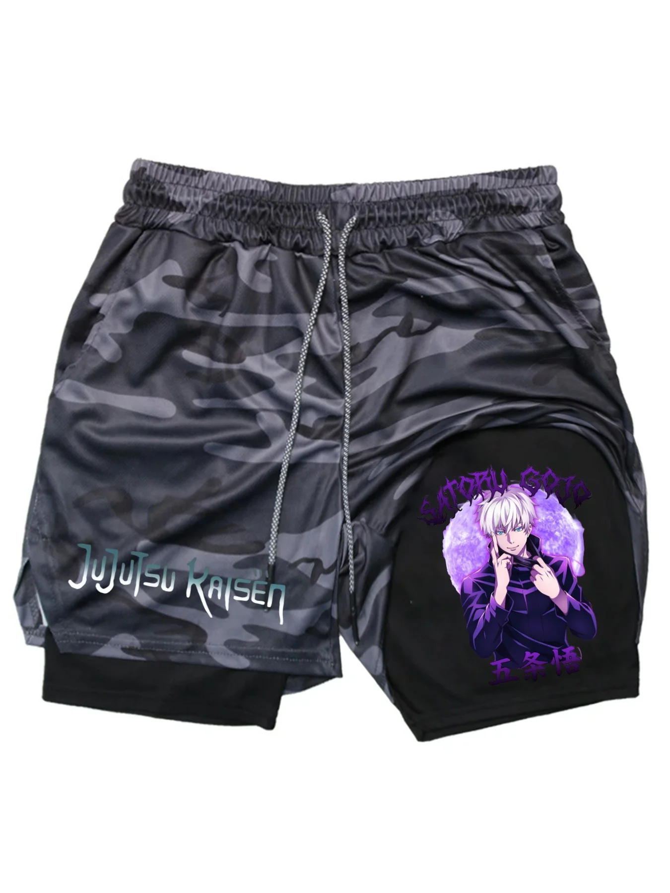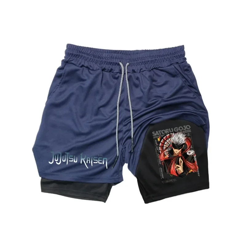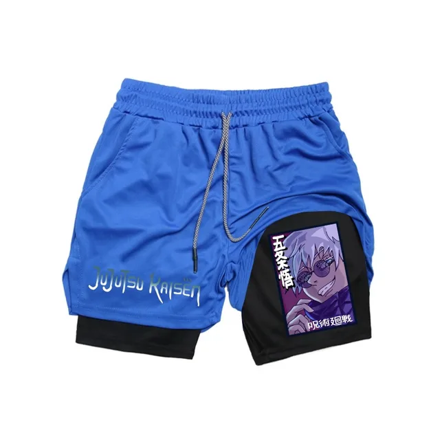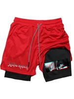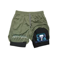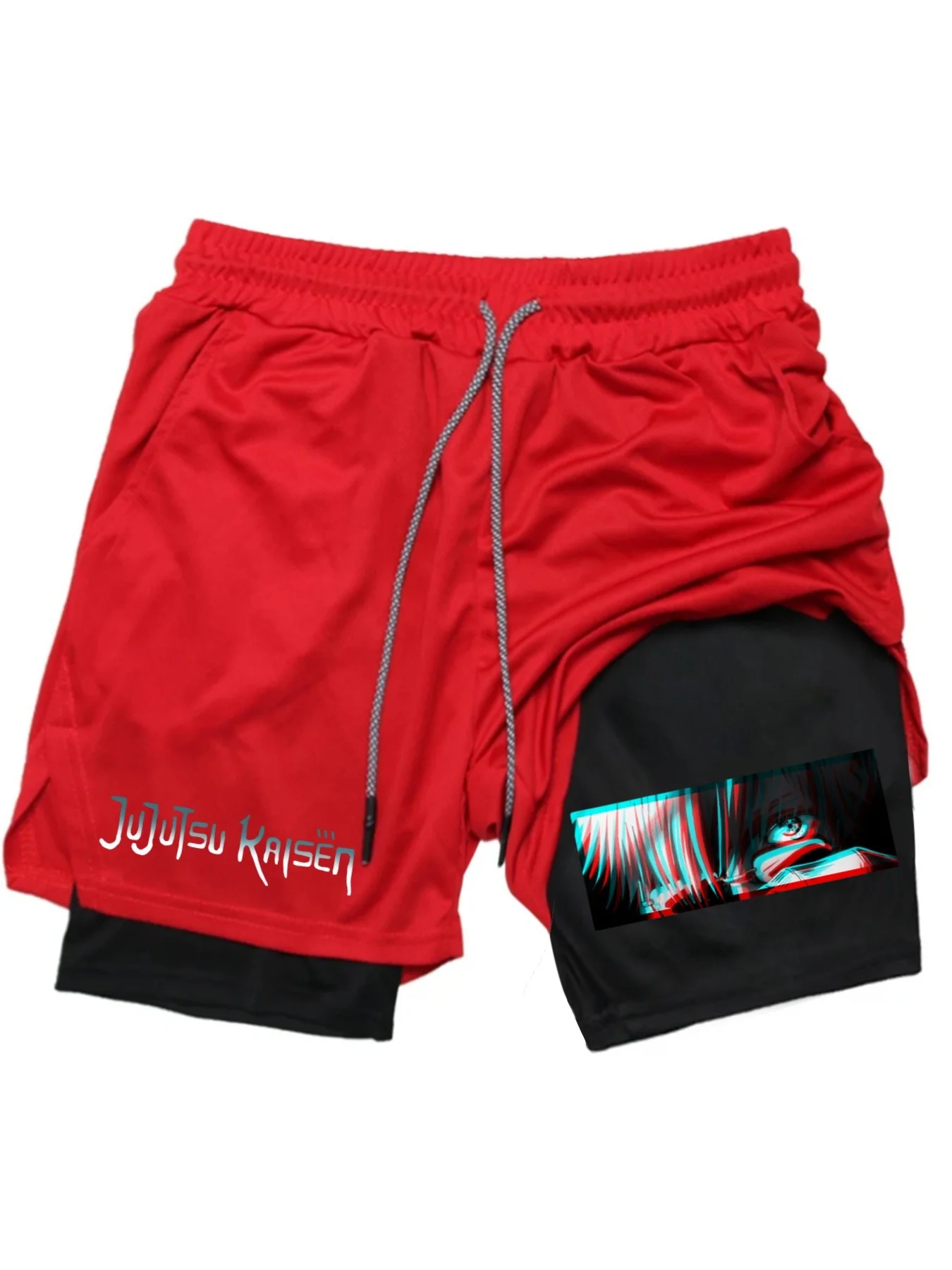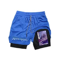 Anime 2in1 Gym Workout Shorts for Men Quick Dry Stretchy Athletic Compression Shorts Fitness Running