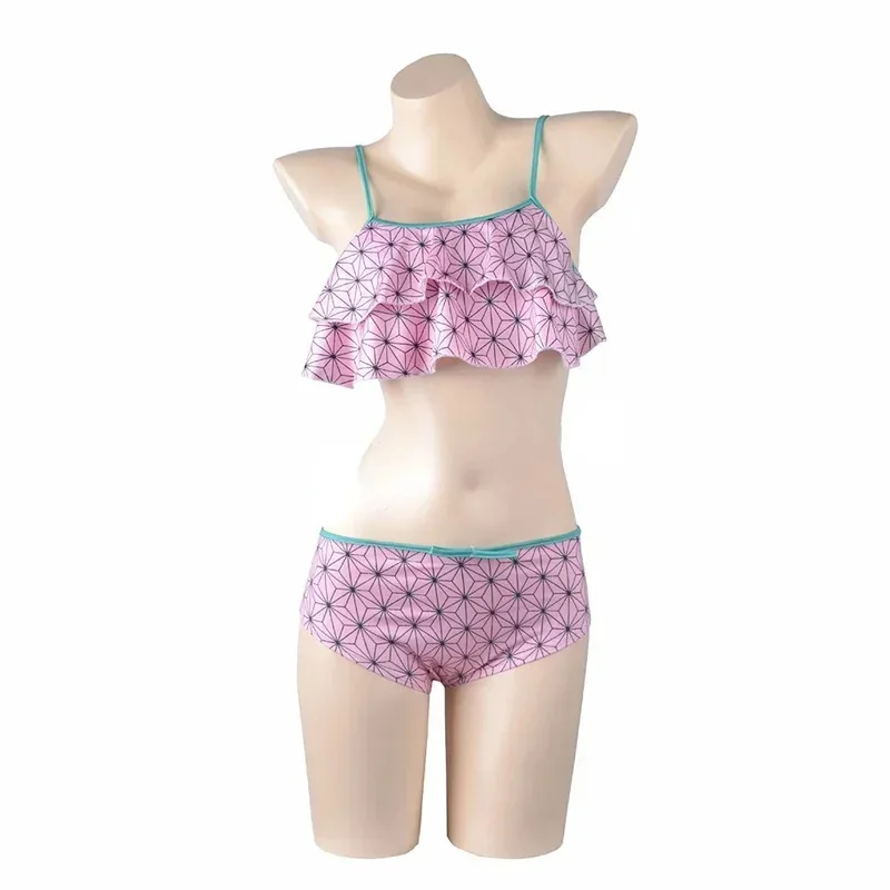 Anime Demon Slayer Agatsuma Zenitsu Cosplay Swimsuit Female Kamado Nezuko Kanroji Mitsuri Shinobu Cosplay Swimwear Woman Girls