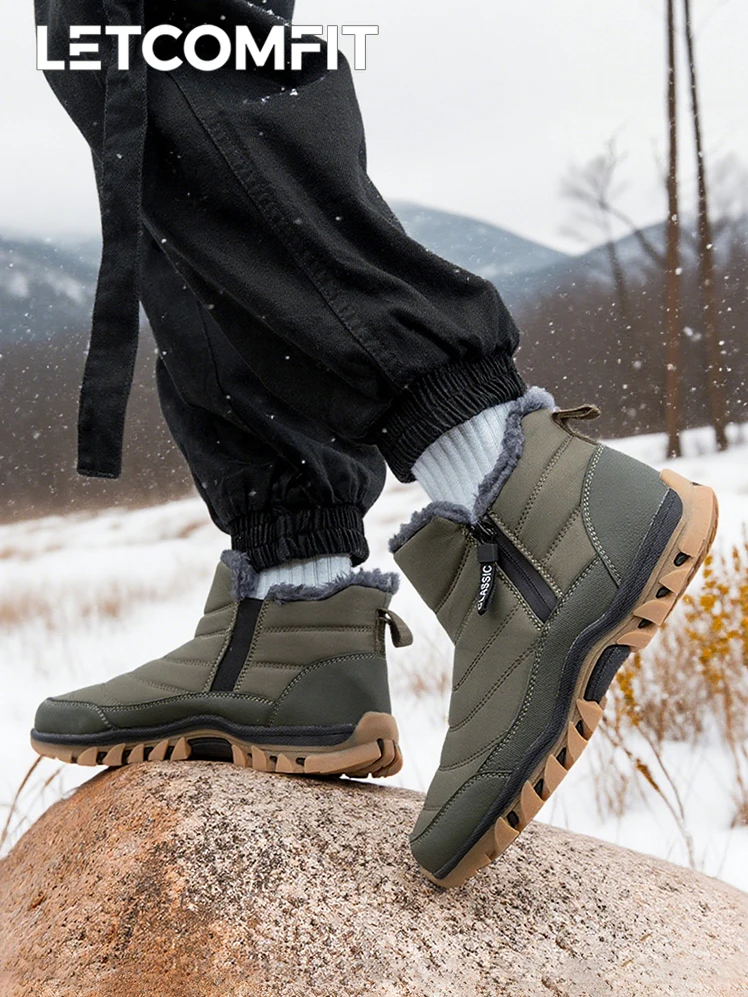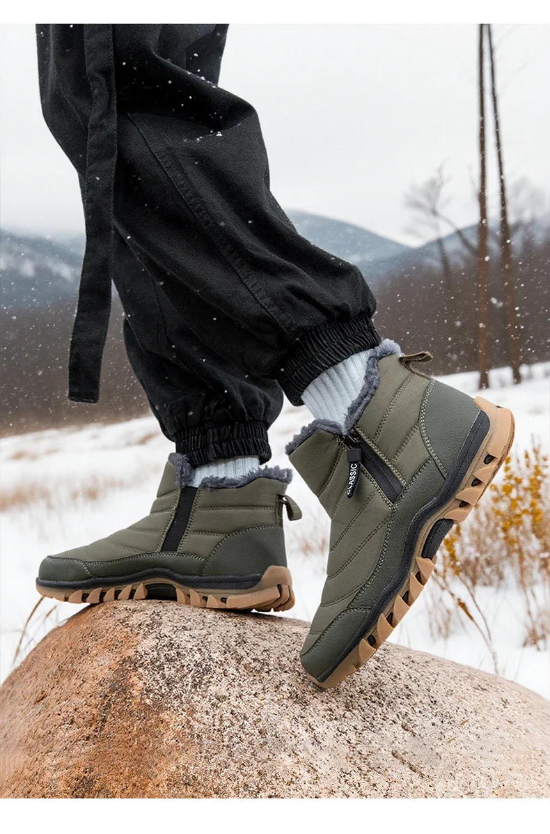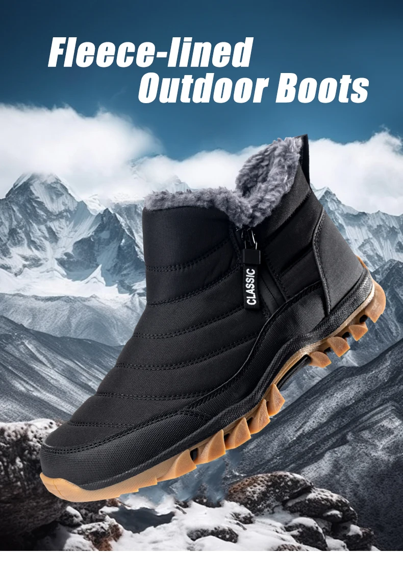 Men's Winter Snow Boots Thick Bottom Short Tube Warm Fleece Lined Indoor Heightening Non-Slip Rubber Sole round Toe Boots