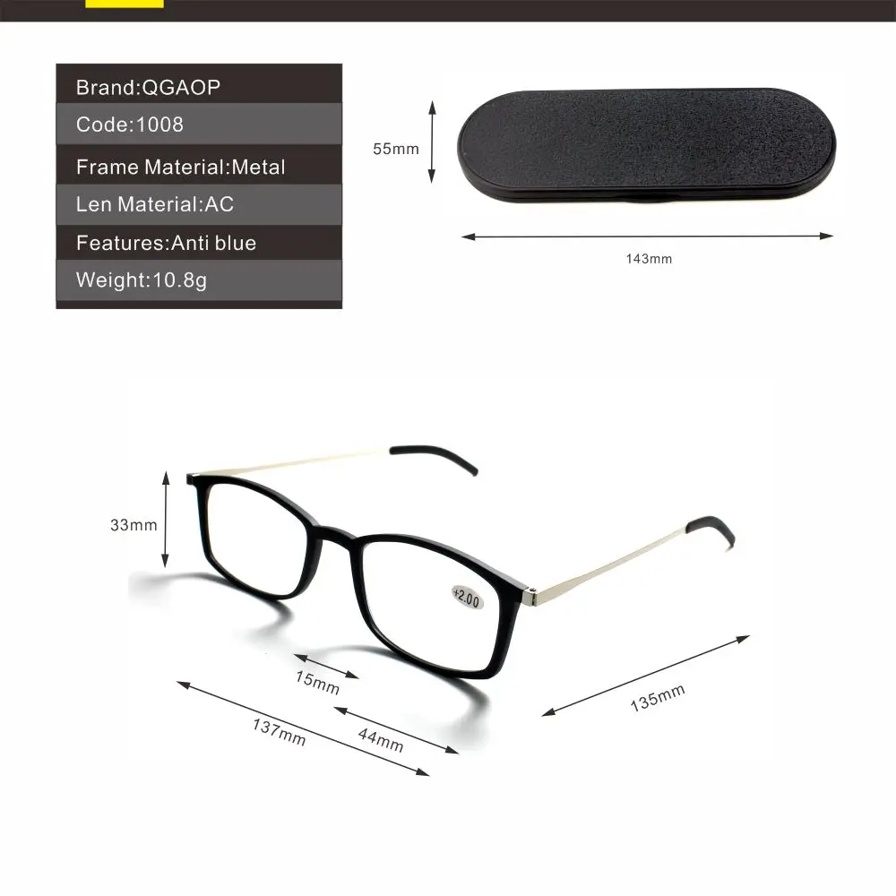 KAEDEK Thin Frame Rectangular frames Tr90 reading glasses +aluminum magnetic case Folding Presbyopic Eyeglasse+1 1.5 2 2.5 3 3.5