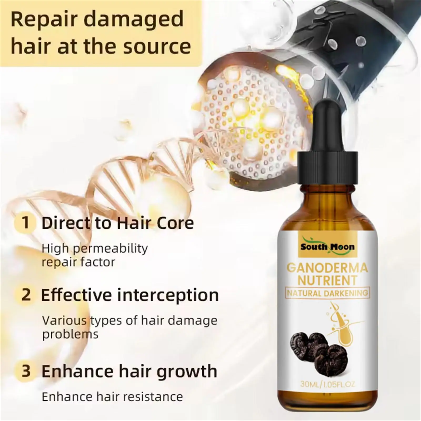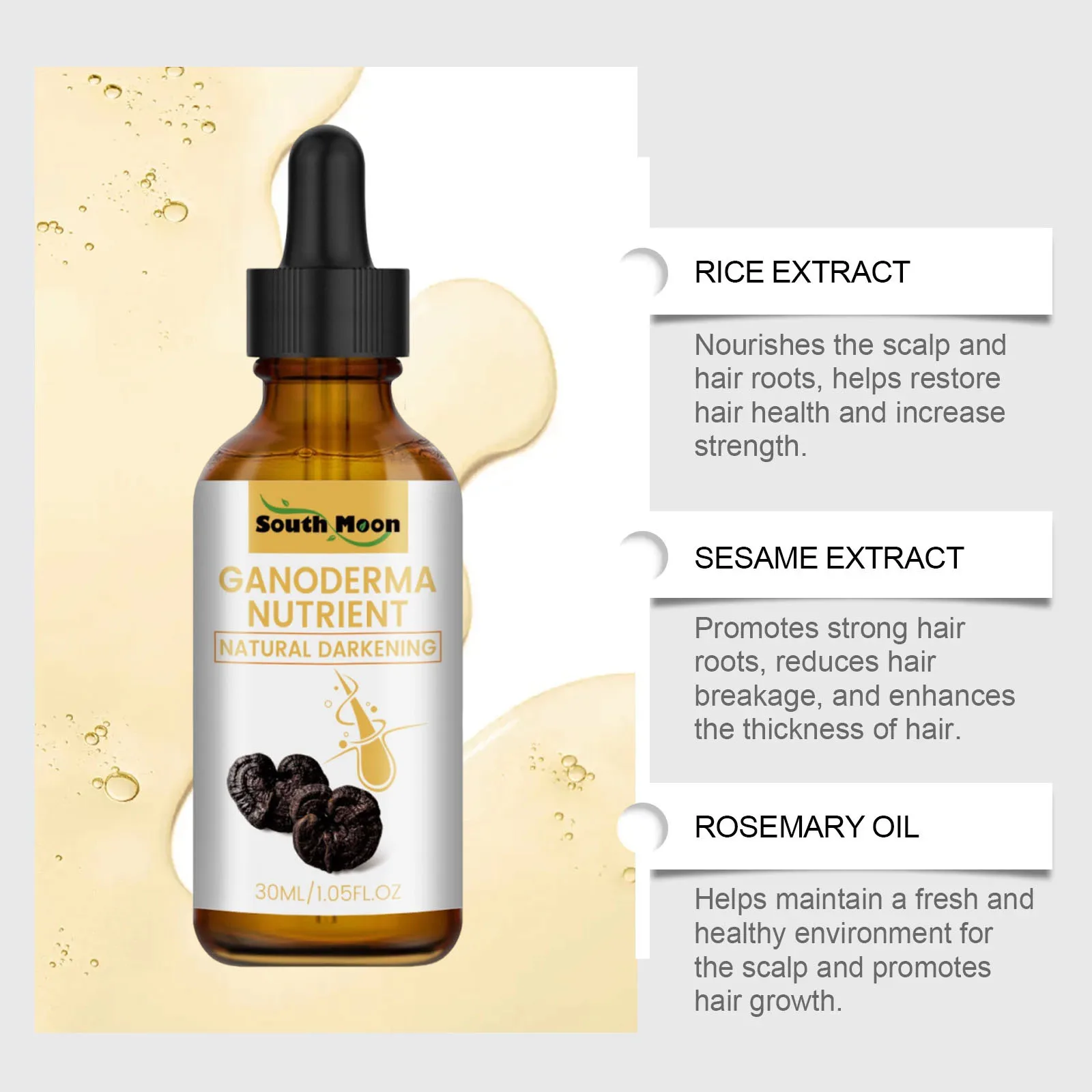 Helps improve hair follicles, provides hair nutrition for the scalp, restores hair color, replenishes the nutrients lost by the scalp after hair removal, prevents dry scalp, keeps the scalp smooth, restores melanin production, Restores hair's natural color. Long-term use can promote hair growth and make hair thicker.