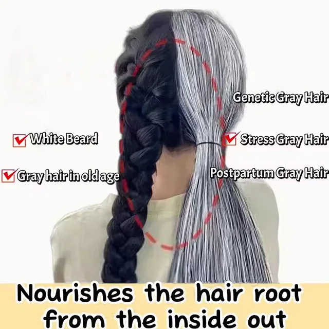 Treats teenage gray hair, postpartum gray hair, hereditary gray hair, middle-aged and elderly gray hair, anti-hair loss, hair care, and is safe and effective for men, women and pregnant women!