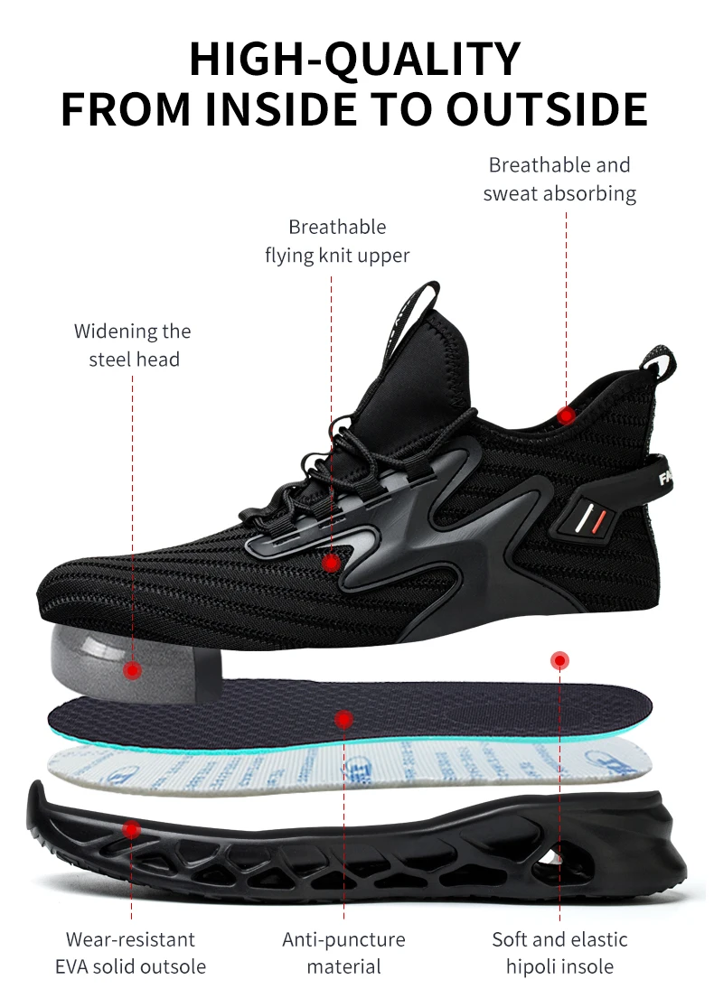 New 2024 Fashion Men Safety Shoes Steel Toe Sneakers Lightweight Anti-smash Anti-puncture Man Breathable Work Safety Boots