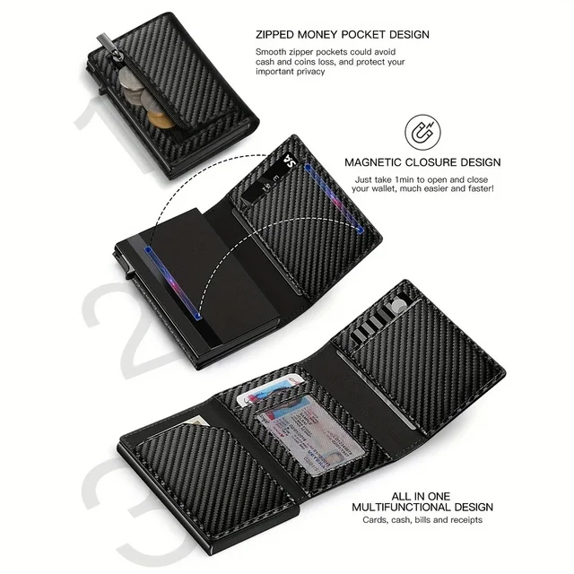 • Carbon Fiber Material :Crafted from microfiber synthetic leather , this wallet offers a sleek, modern look while ensuring durability and longevity.