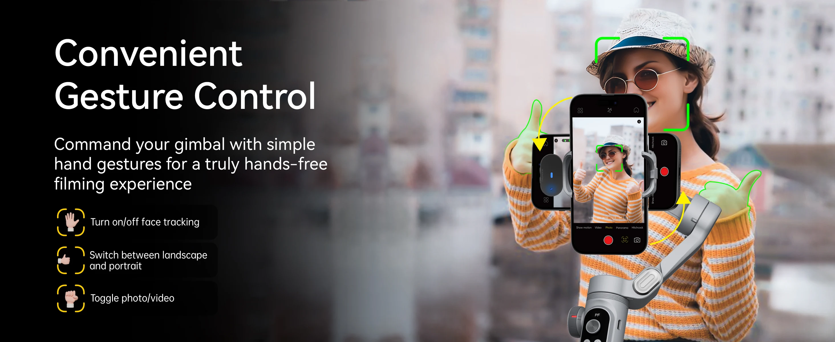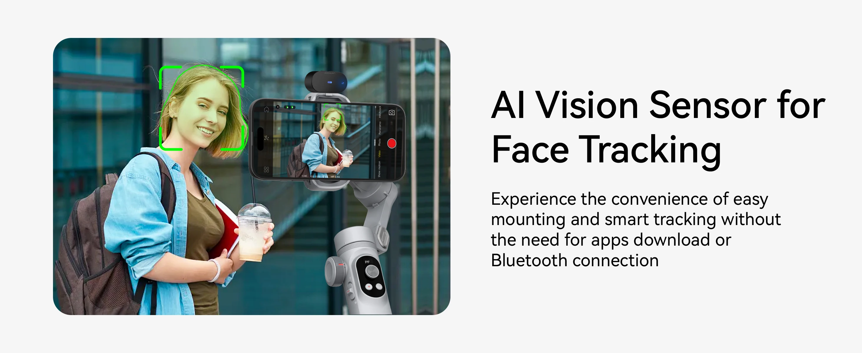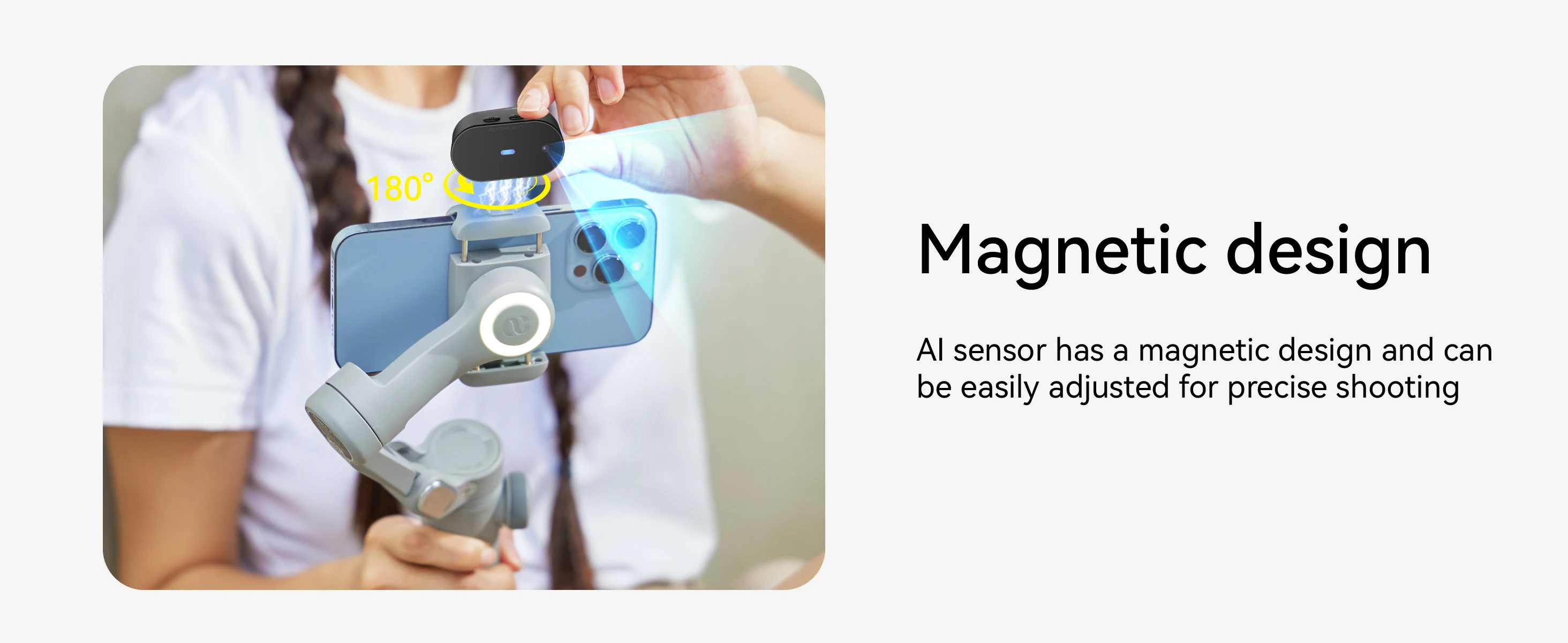 【Magnetic AI Sensor Assistant】Magnetic AI tracking assistant allows you to use the face tracking function without using the app and Bluetooth connection, unleashing your creativity in various shooting environments more quickly and conveniently.AI sensor can be activated or deactivated with simple gestures, ensuring you are always in the frame, capturing your every expression and movement.