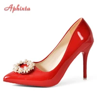 Aphixta Hot 10cm Stiletto Heels Pearl Buckle Gradient Pumps Women Shoes Patent Leather Super High Pointed