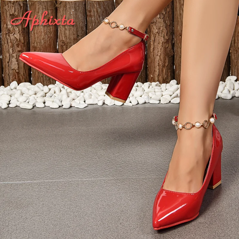 Aphixta New 10cm Stiletto Heels Gradient Pumps Women Shoes Patent Leather Ankle Strap Super High Pointed Toe Super Big 48 49 50
