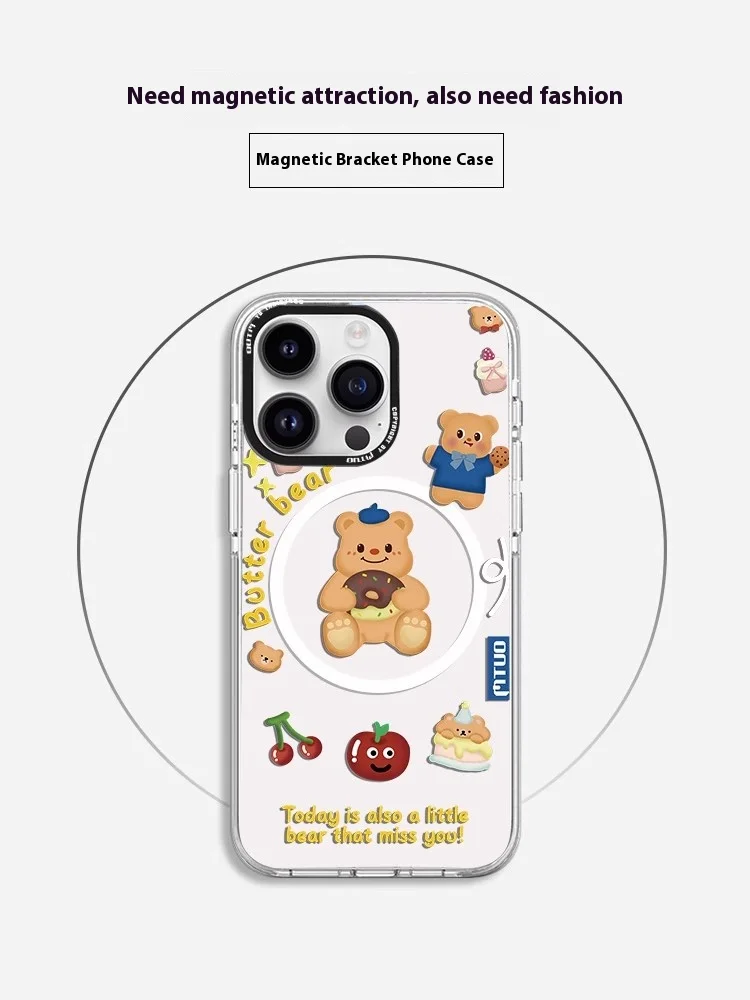 Apple 16promax mobile phone case magnetic belt bracket 15Pro new cartoon ultra-thin protective case