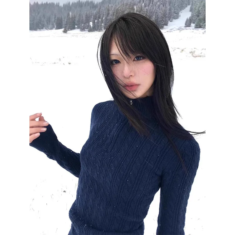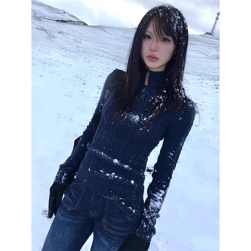 Crafted from premium snow yarn, this long-sleeve knitwear offers a soft and comfortable wearing experience.