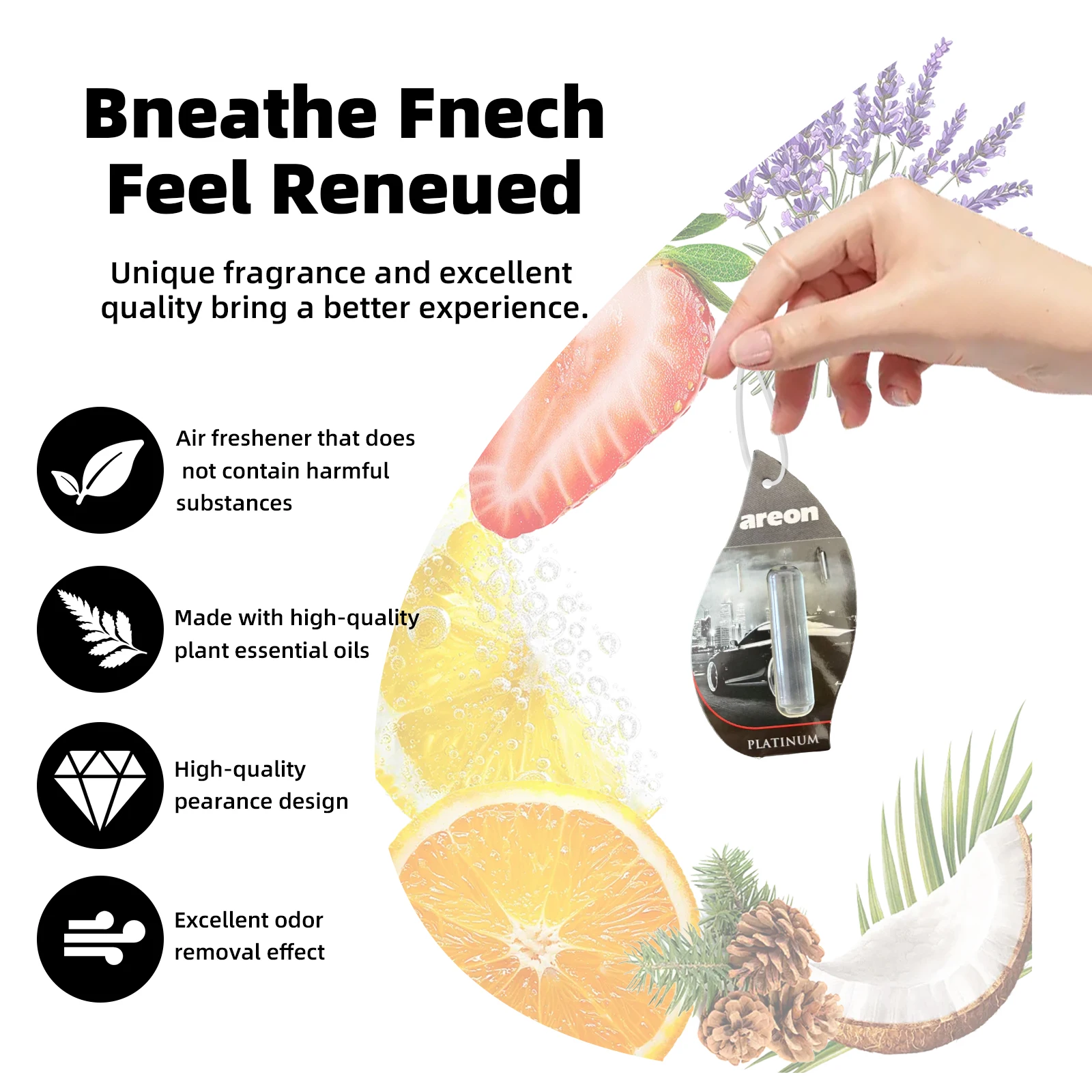 Areon 5/20pcs PLATINUM Scent Car Air Freshener, Natural Tea-Scented Paper, Car-Mounted Hanging Type, Car Interior Accessories