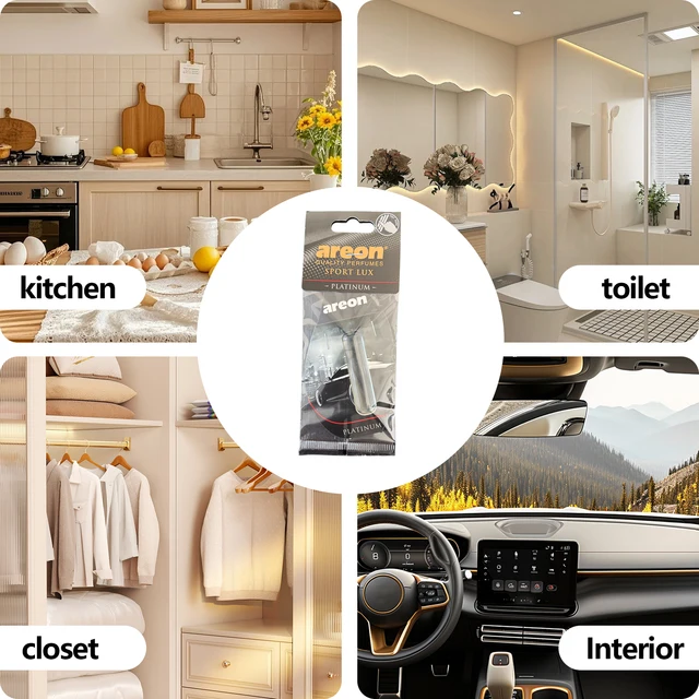 Areon 5/20pcs PLATINUM Scent Car Air Freshener, Natural Tea-Scented Paper, Car-Mounted Hanging Type, Car Interior Accessories