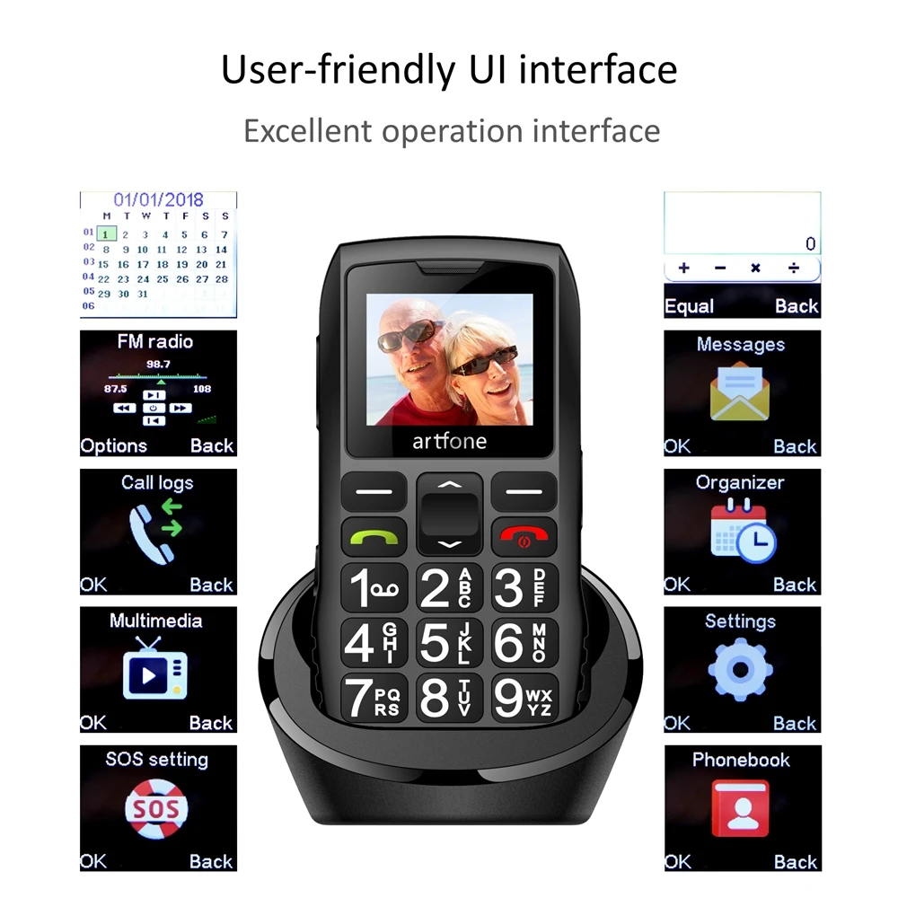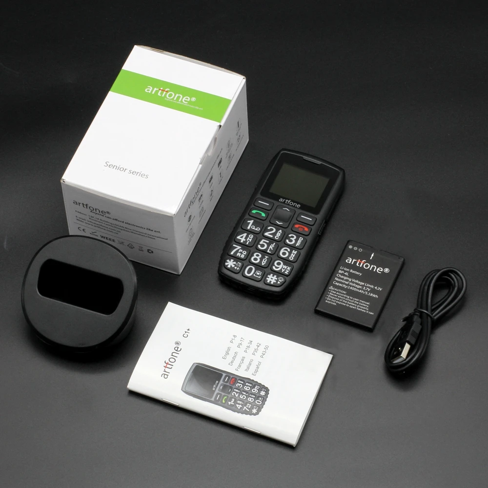 Artfone C1+ Bar Senior Mobile Phone LTE 4G Net With Charging Dock Big Keypad For Elderly Dual Sim One Key SOS FM 1400mAh Cell