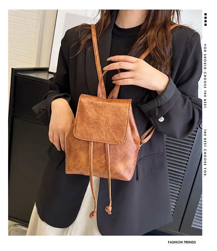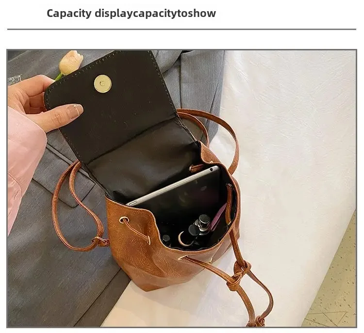 Be the first to review “Artistic Brown Miniature Drawstring Women’s Backpack Spring Summer 2025 New Style Versatile Retro”