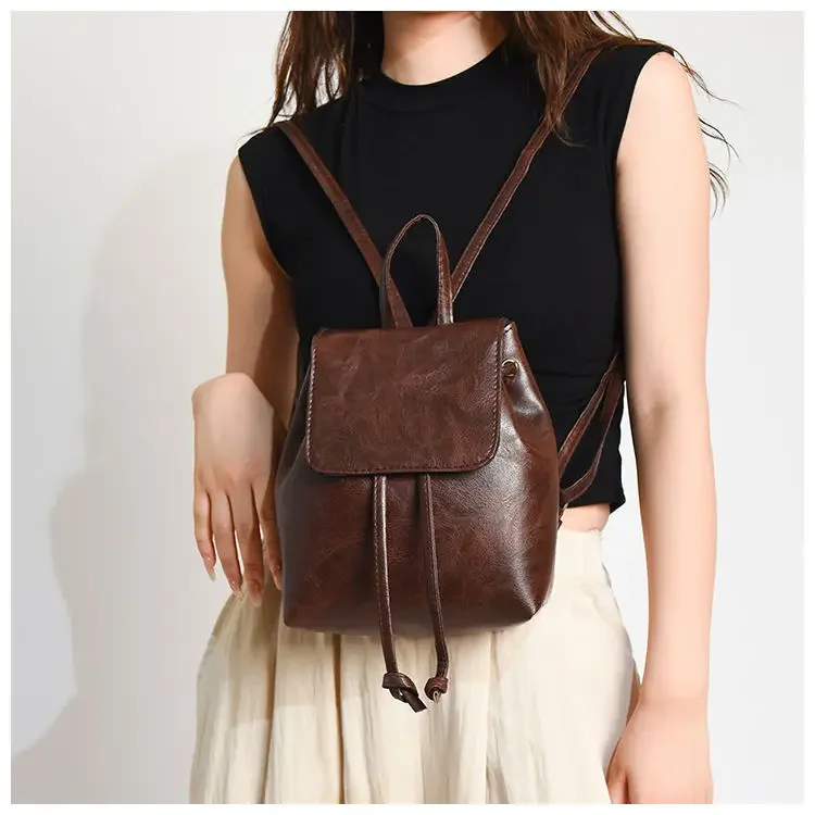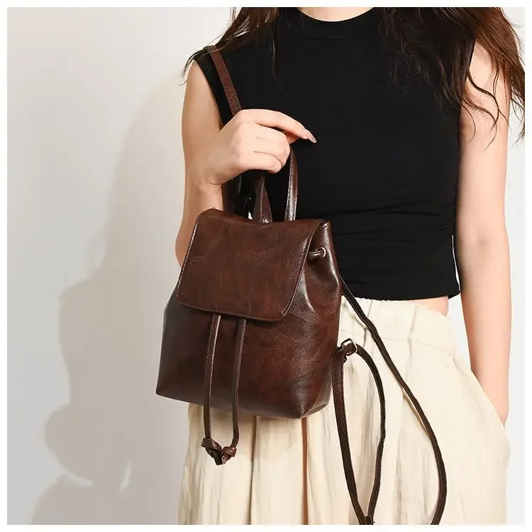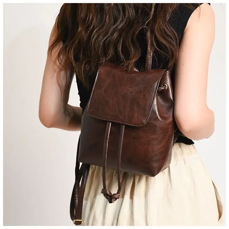 Artistic Brown Miniature Drawstring Women’s Backpack Spring Summer 2025 New Style Versatile Retro