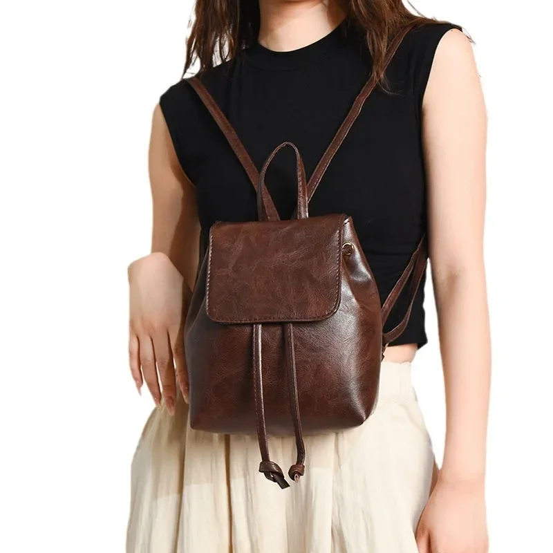 Artistic Brown Miniature Drawstring Women's Backpack Spring Summer 2025 New Style Versatile Retro Single Shoulder Bag