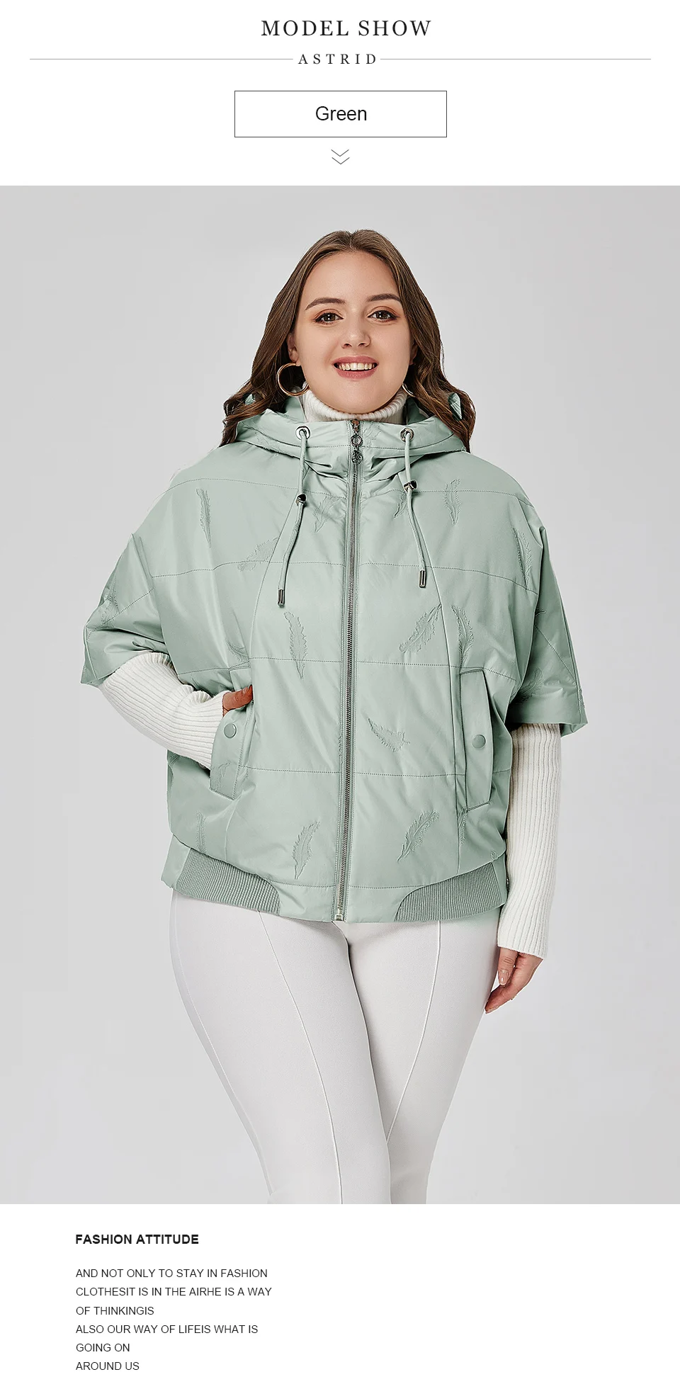Astrid Women's Jacket Winter 2023 Plus Size Bio Down Jackets Hooded Quilted Cotton Coat Women Parka Female Clothing Split Hem