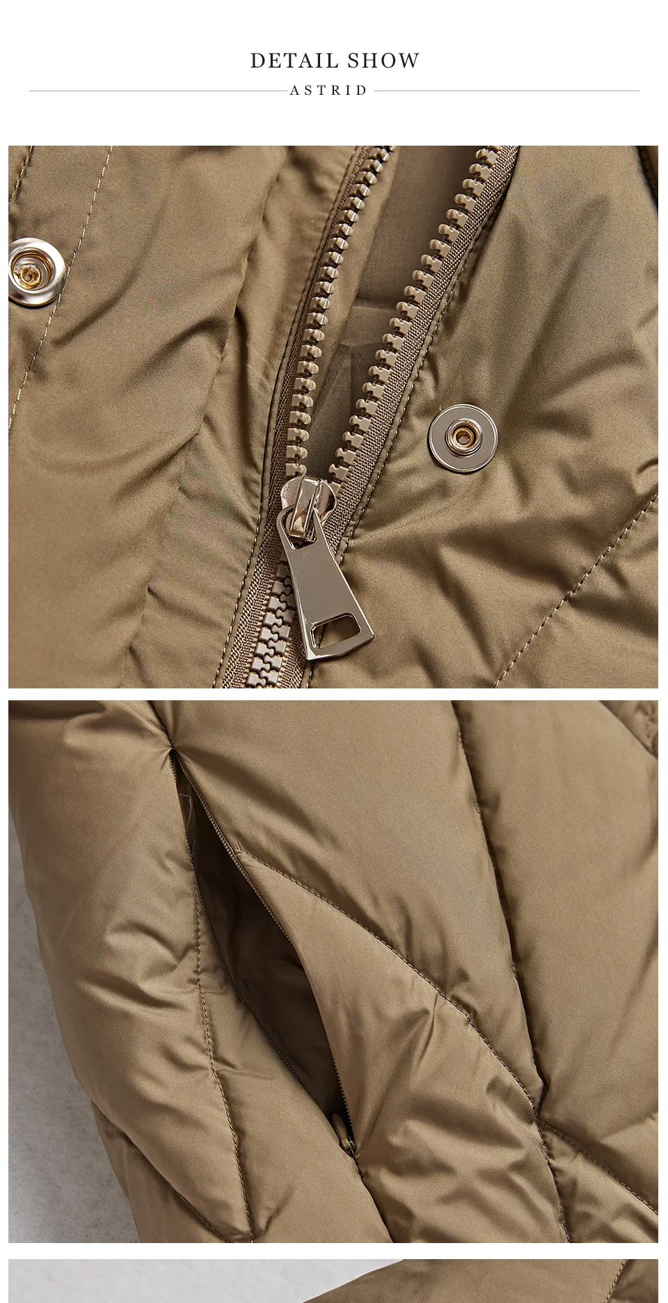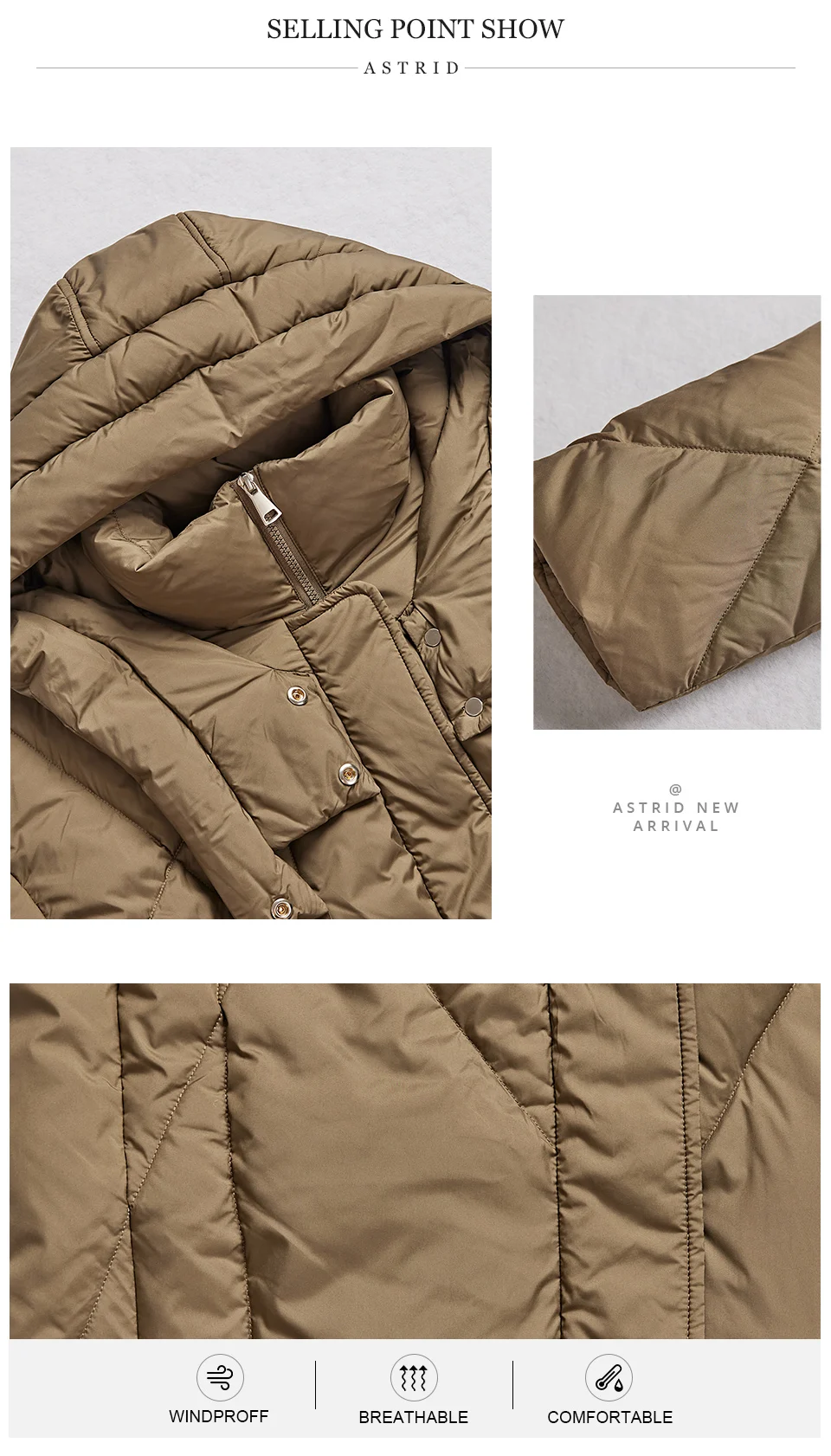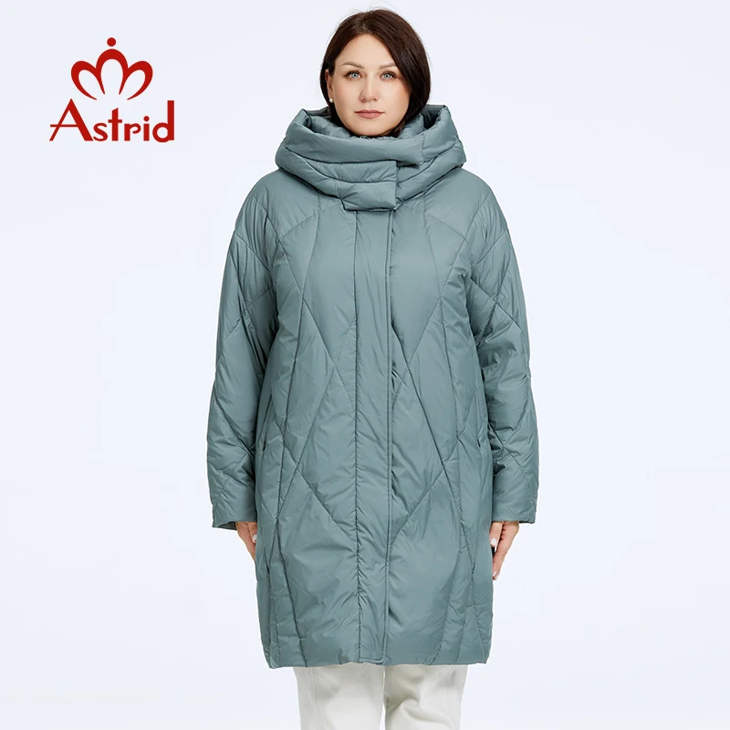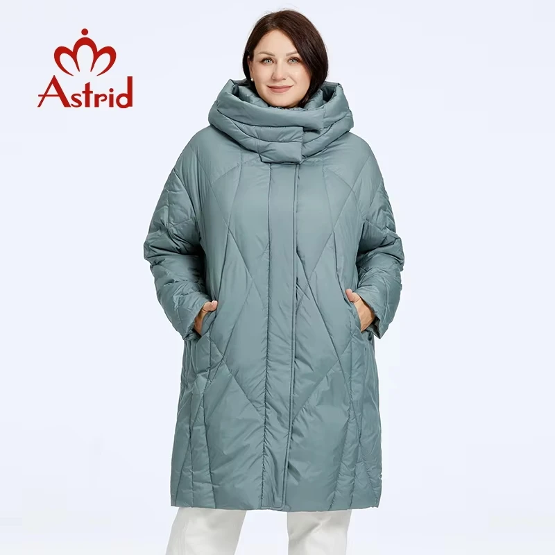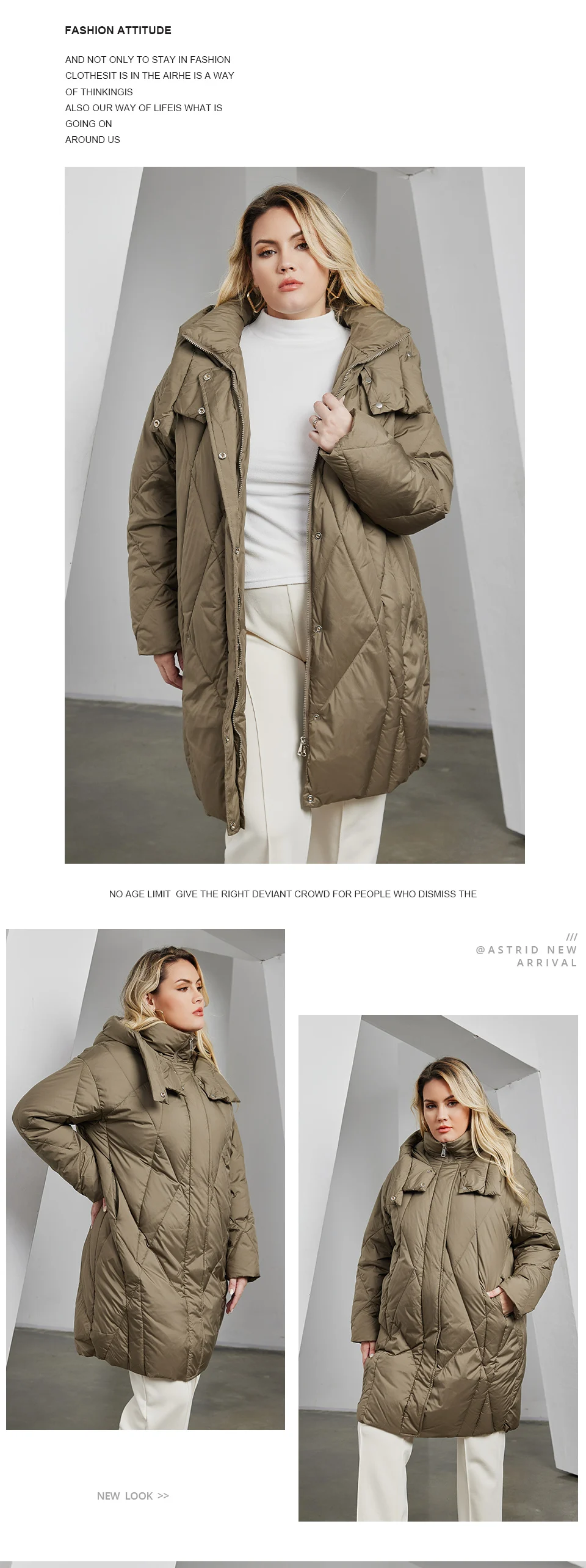 Astrid Women's Winter Jacket 2023 Plus Size Women Parka Long Down Jackets Hooded Diamond Quilted Coat Female Clothing Split Hem