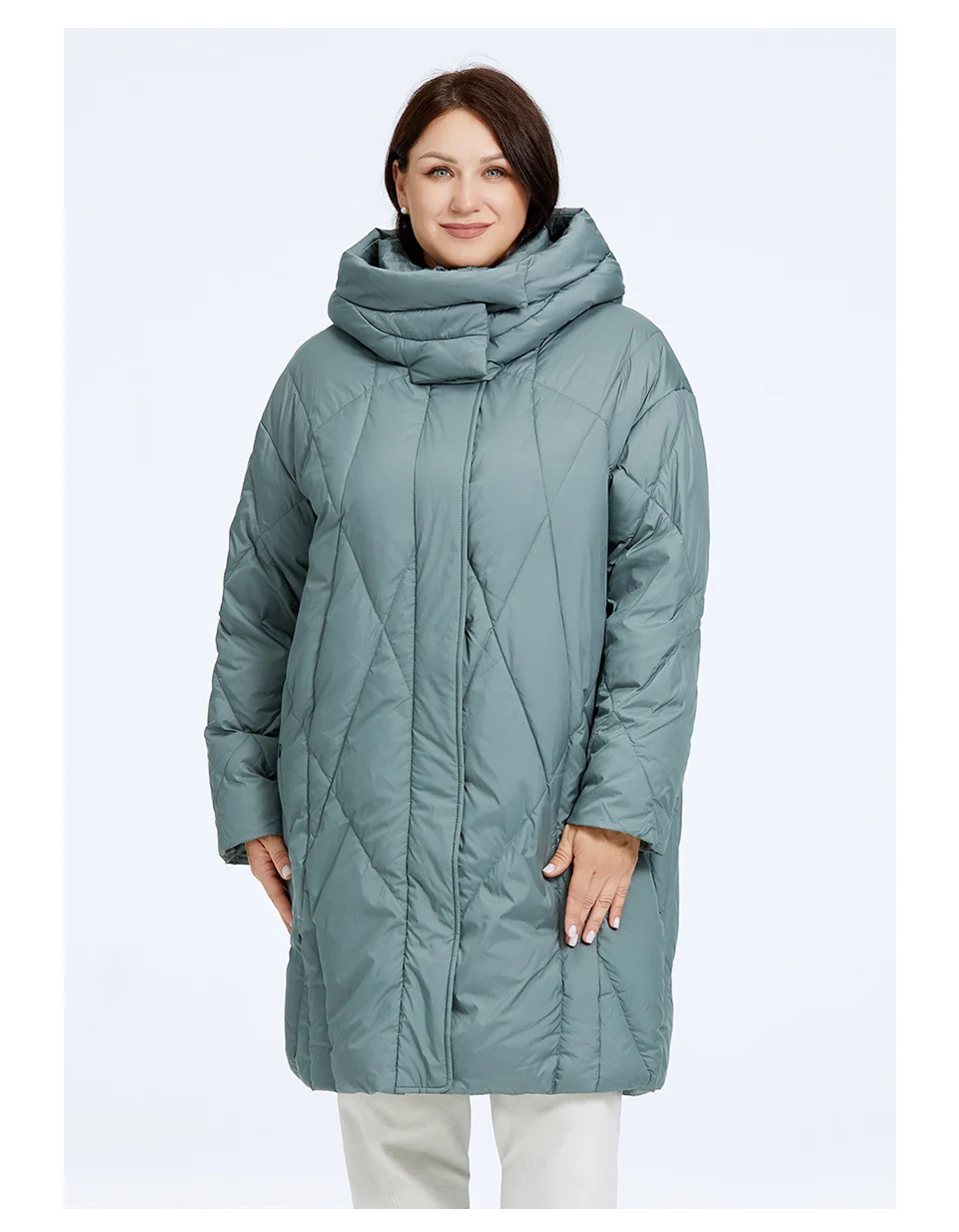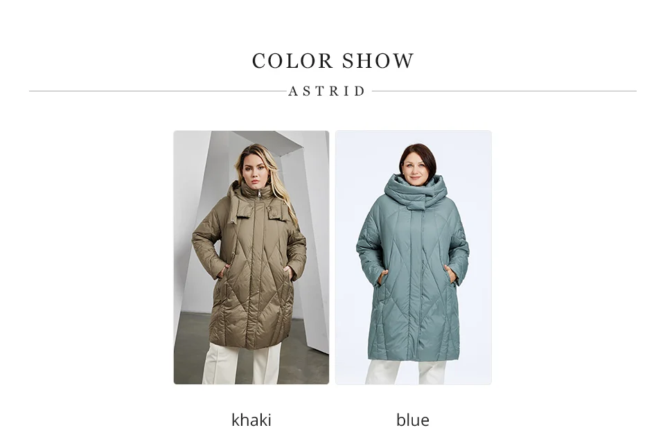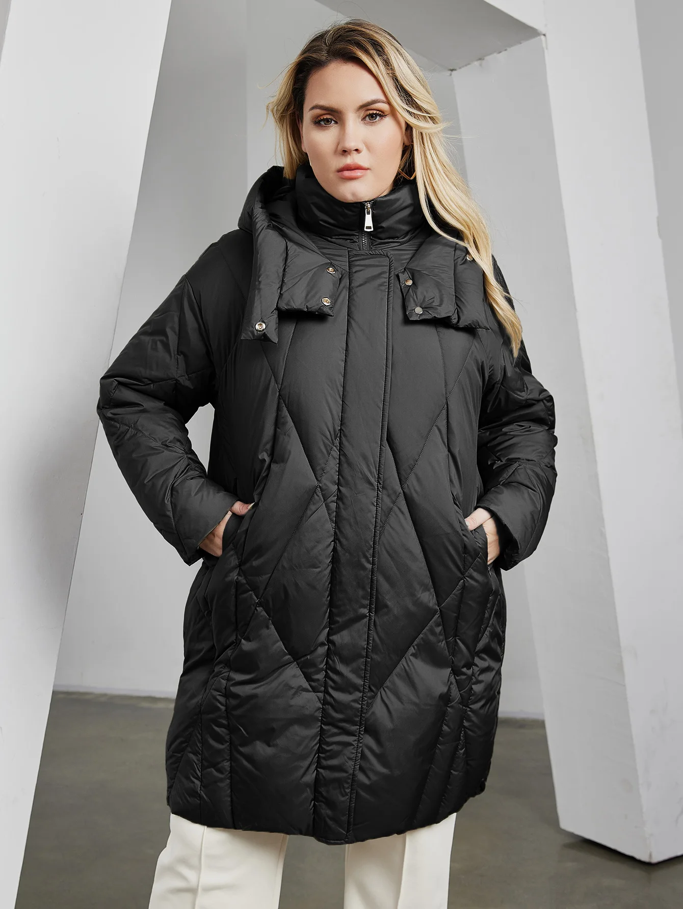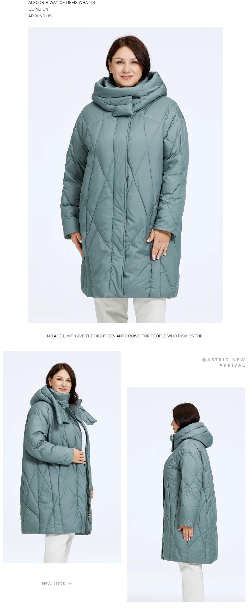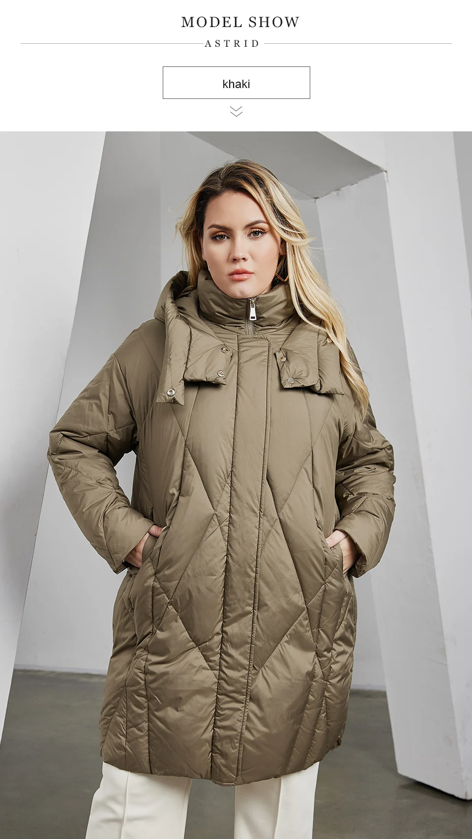 Astrid Women's Winter Jacket 2023 Plus Size Women Parka Long Down Jackets Hooded Diamond Quilted Coat Female Clothing Split Hem