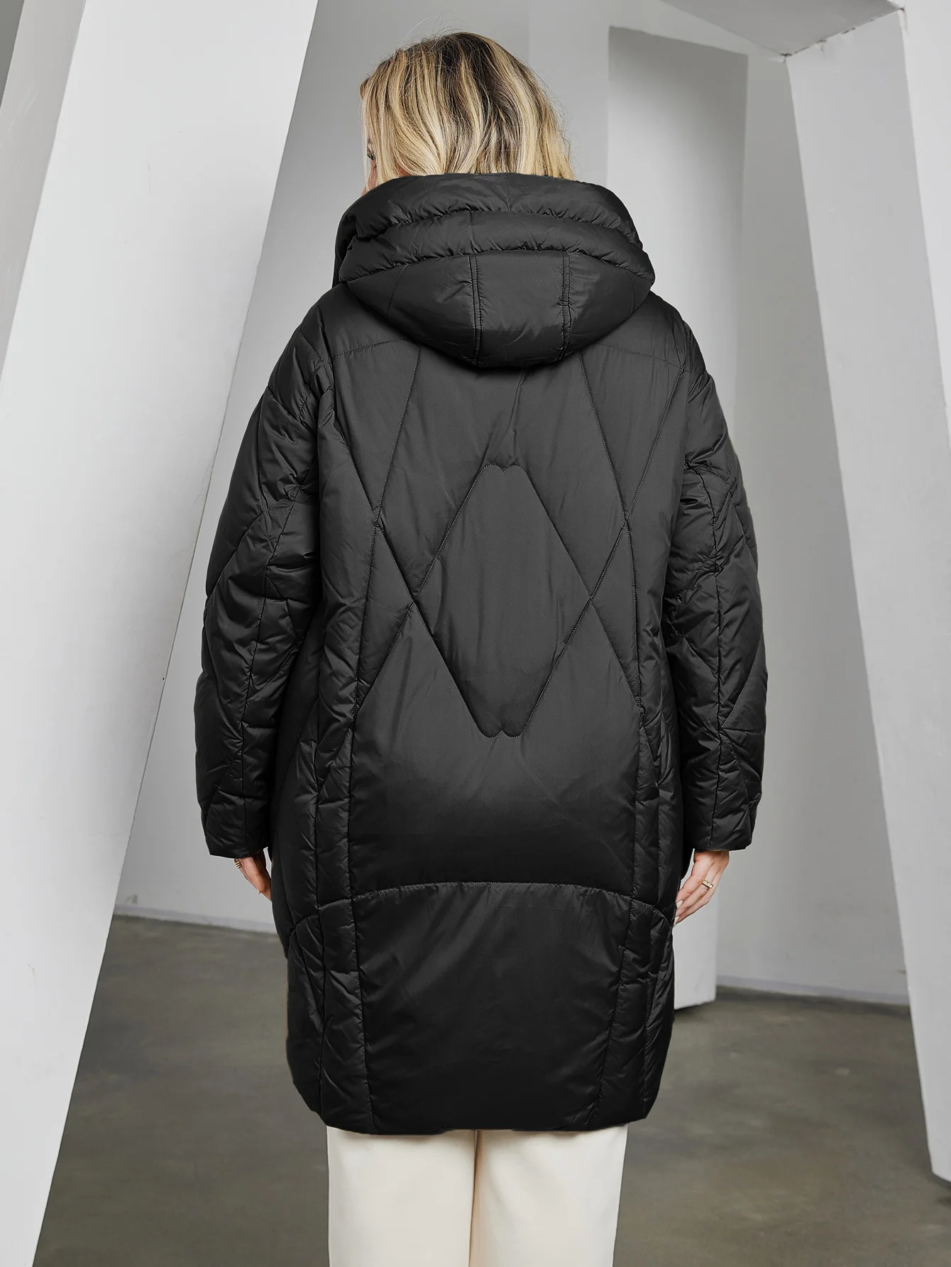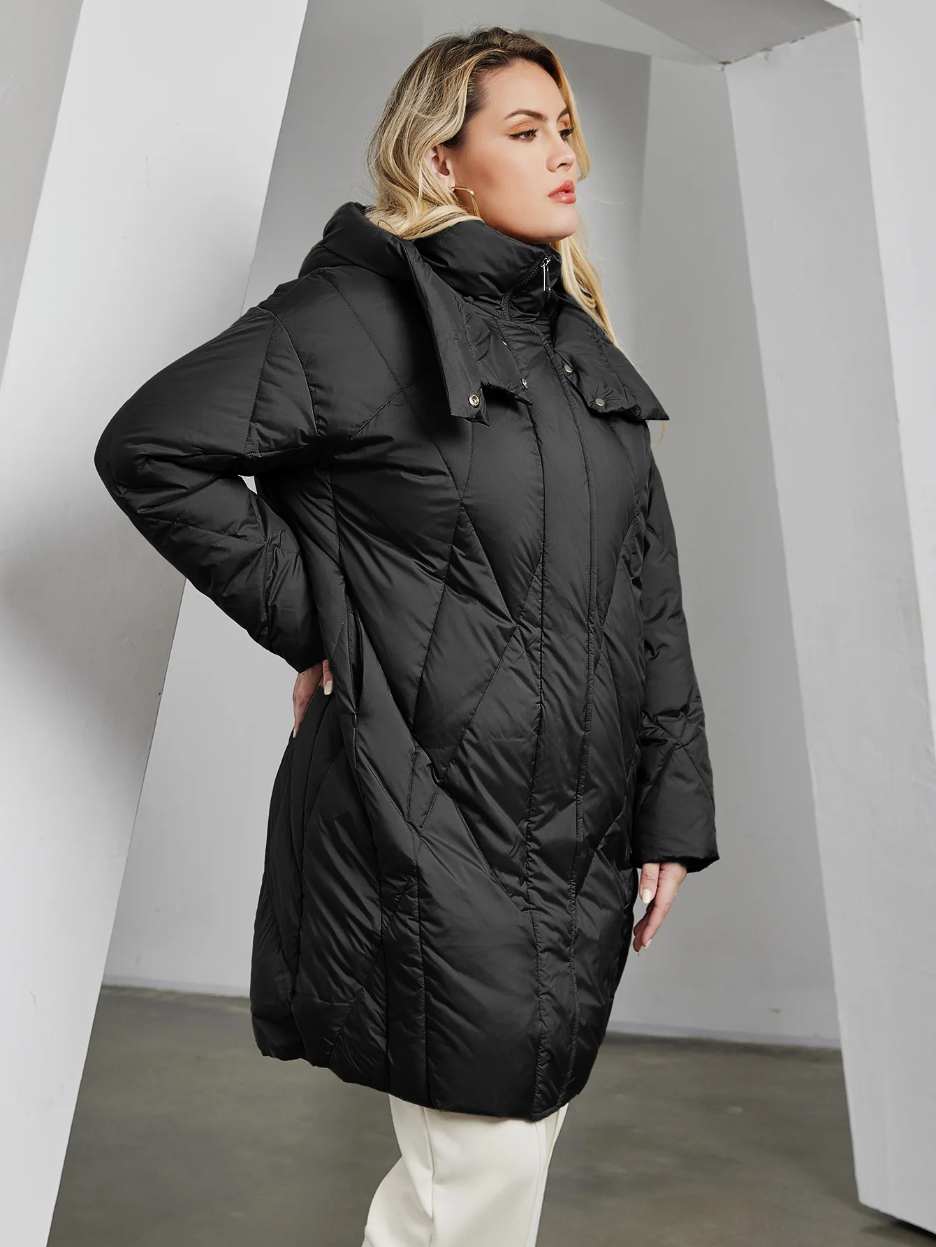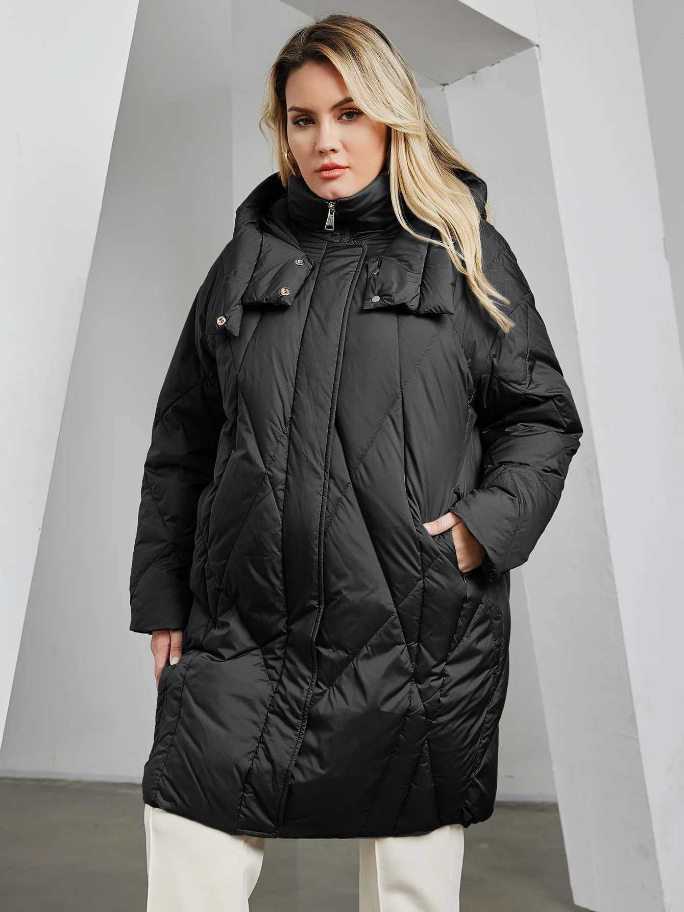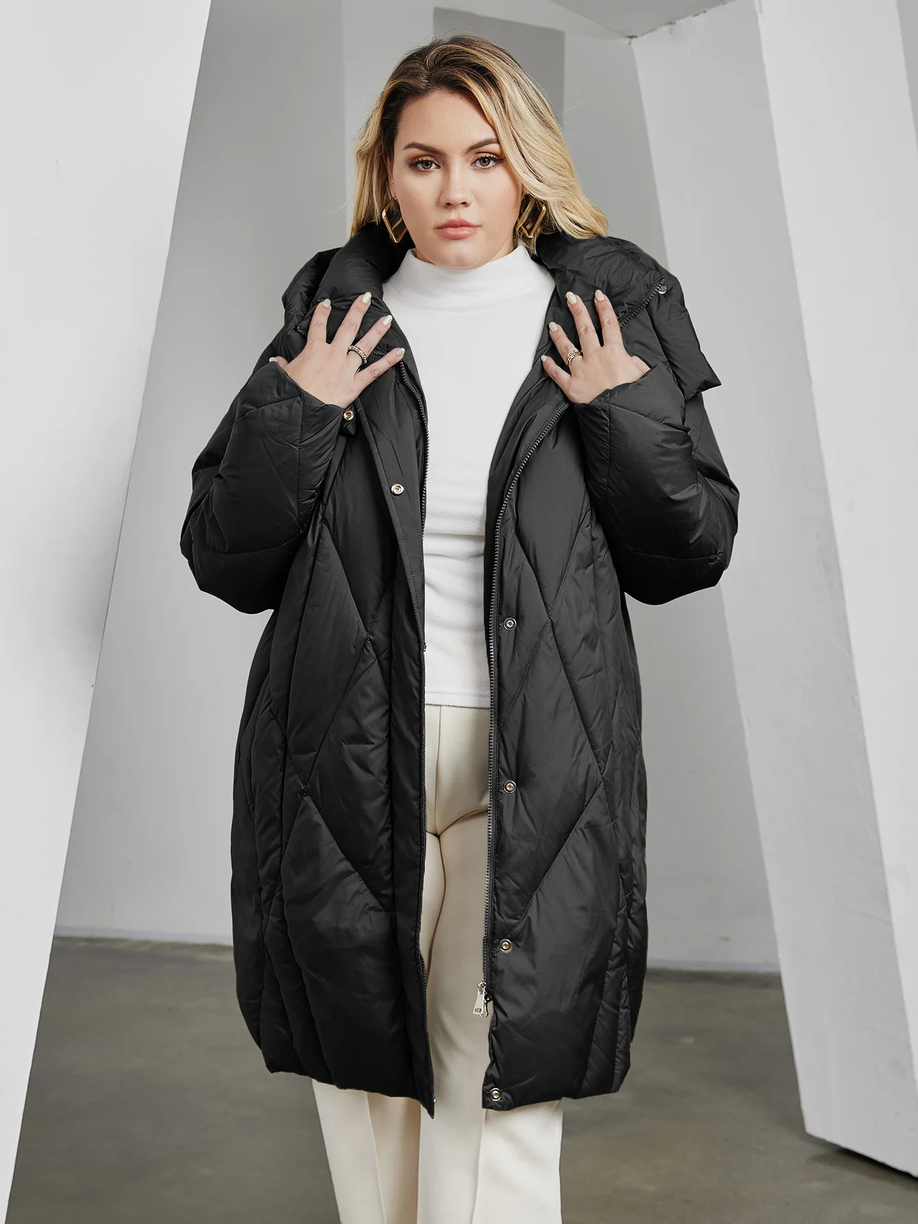 Astrid Women's Winter Jacket 2023 Plus Size Women Parka Long Down Jackets Hooded Diamond Quilted Coat Female Clothing Split Hem