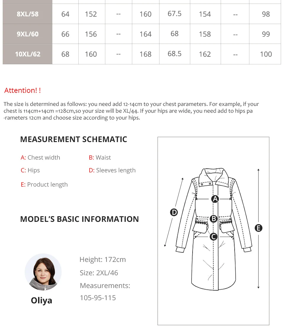 | EU Size | 42 44 46 48 50 52 54 56 58 60 62 |