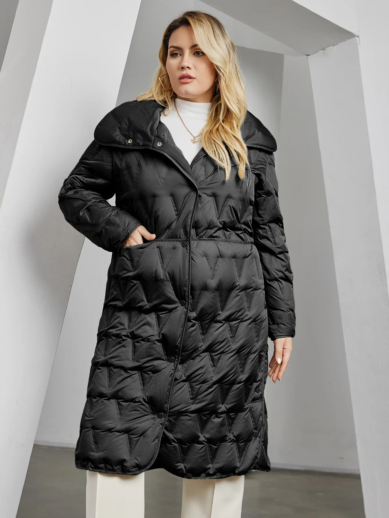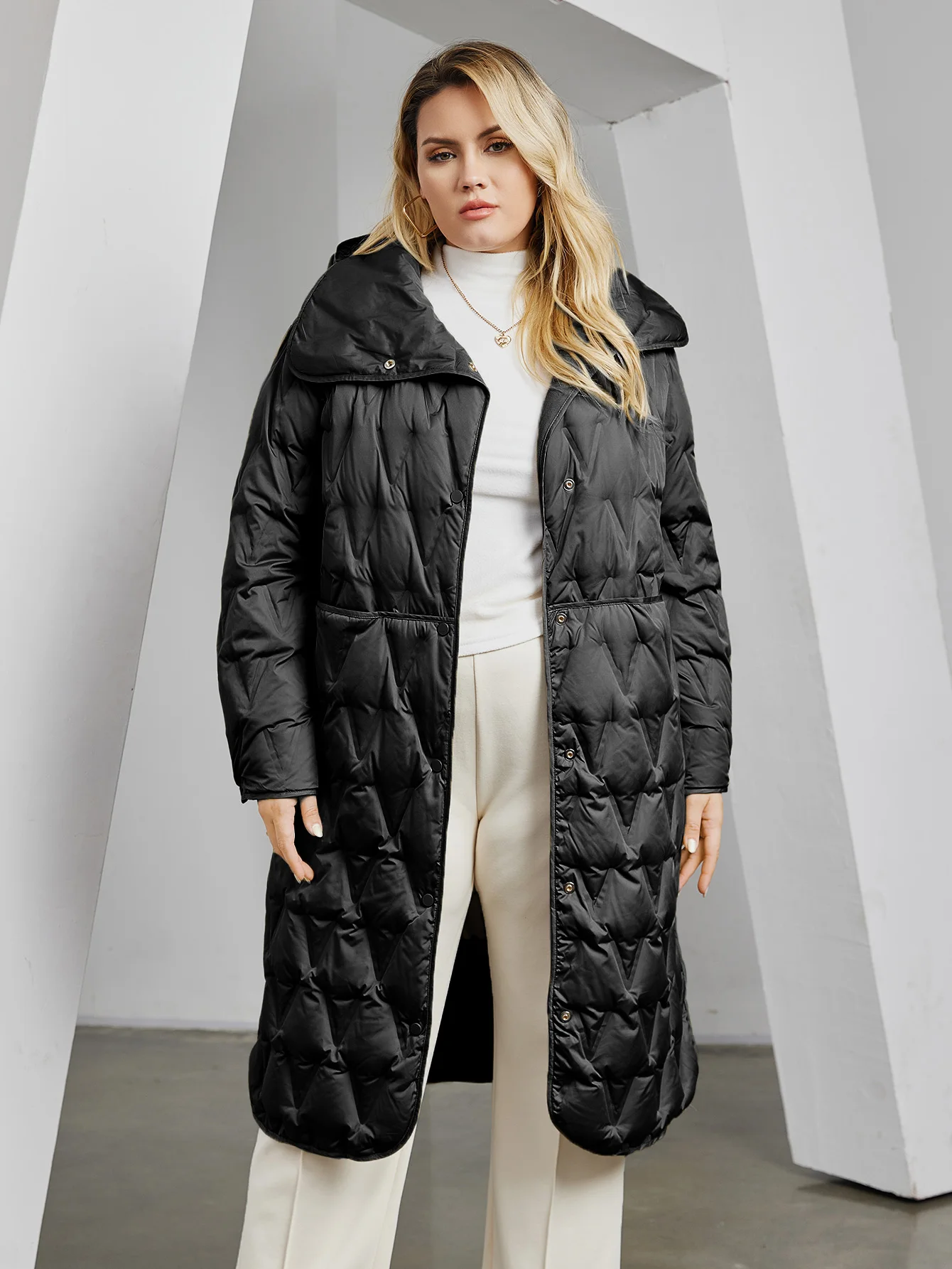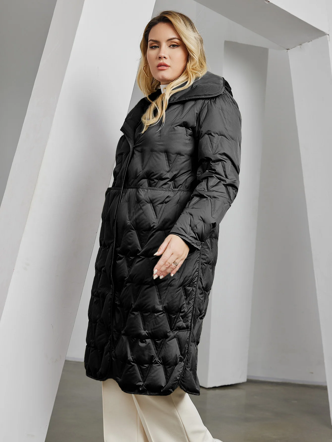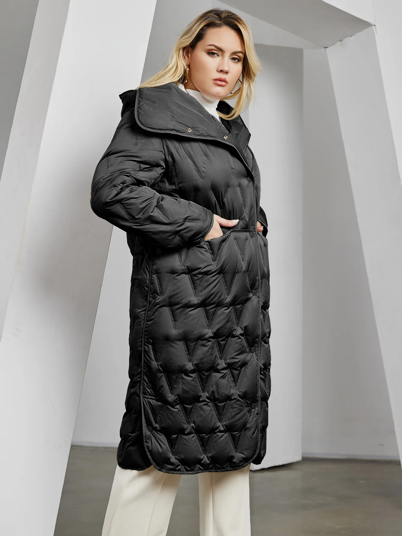 Pocket, hood,Button,Diamond pattern Quilted Jacket