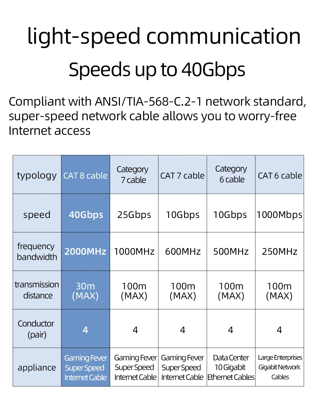 | Cable Type | Cat8 |