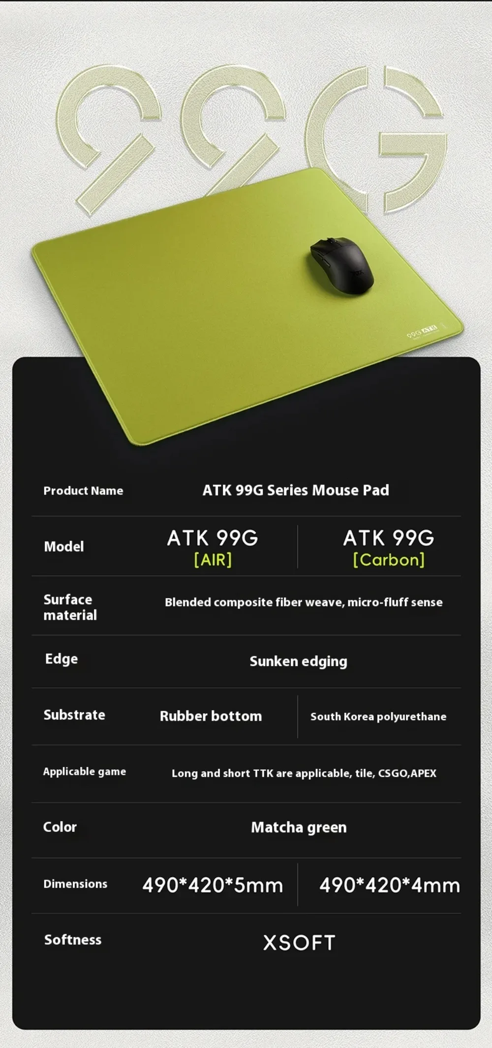 Atk 99G Carbon/Air Mousepad Xsoft Anti Slip Pad Custom E-sports Mechanical Keyboard PC Gamer Mouse Pad