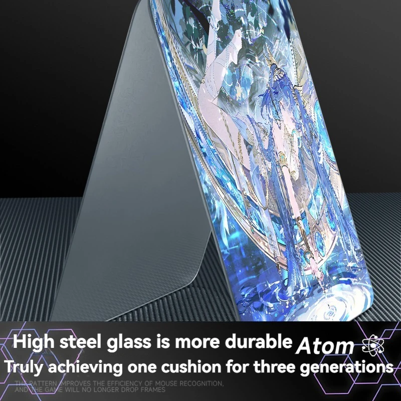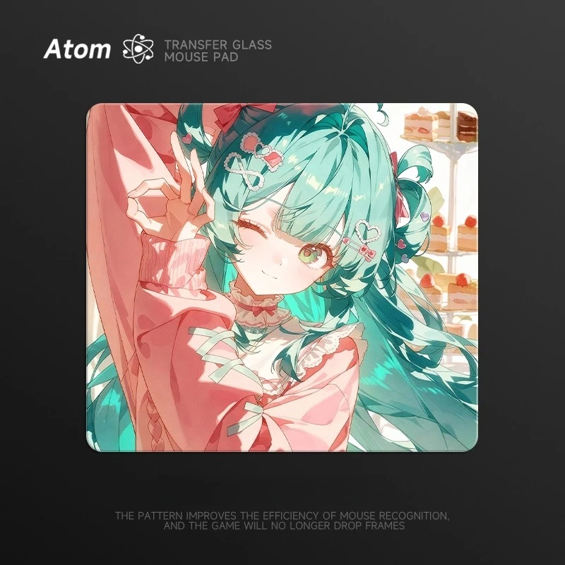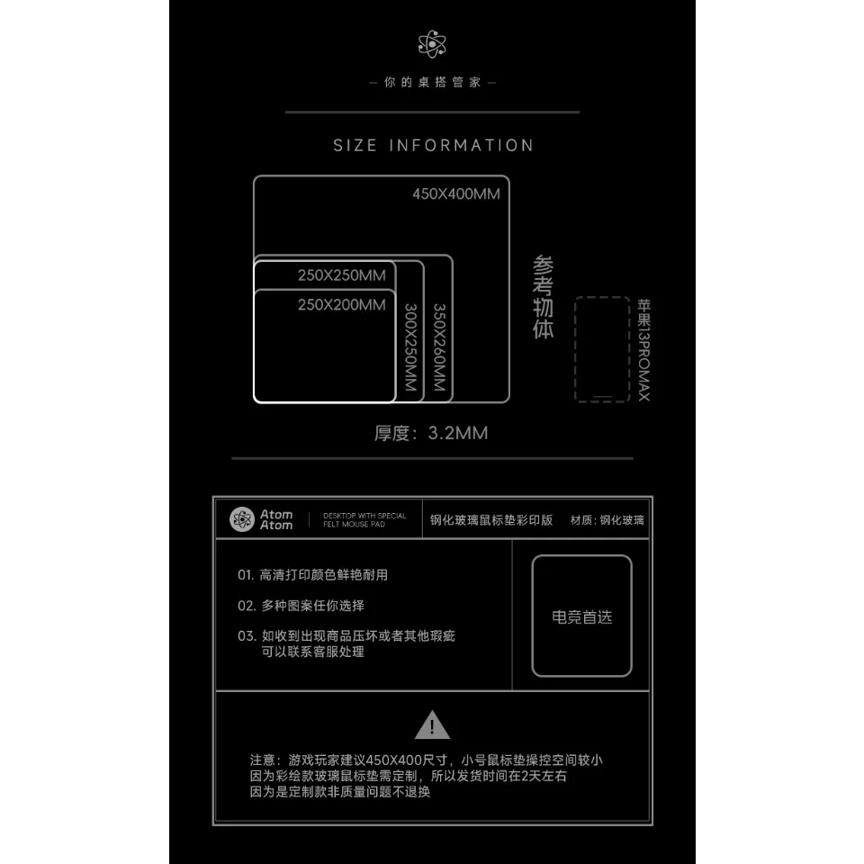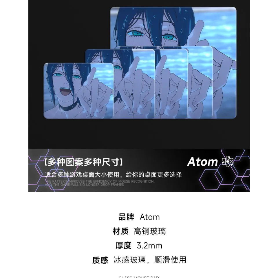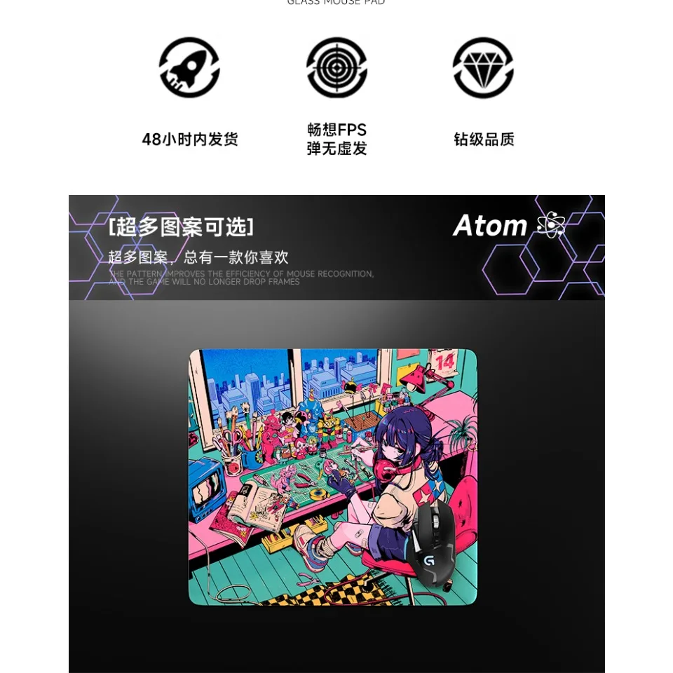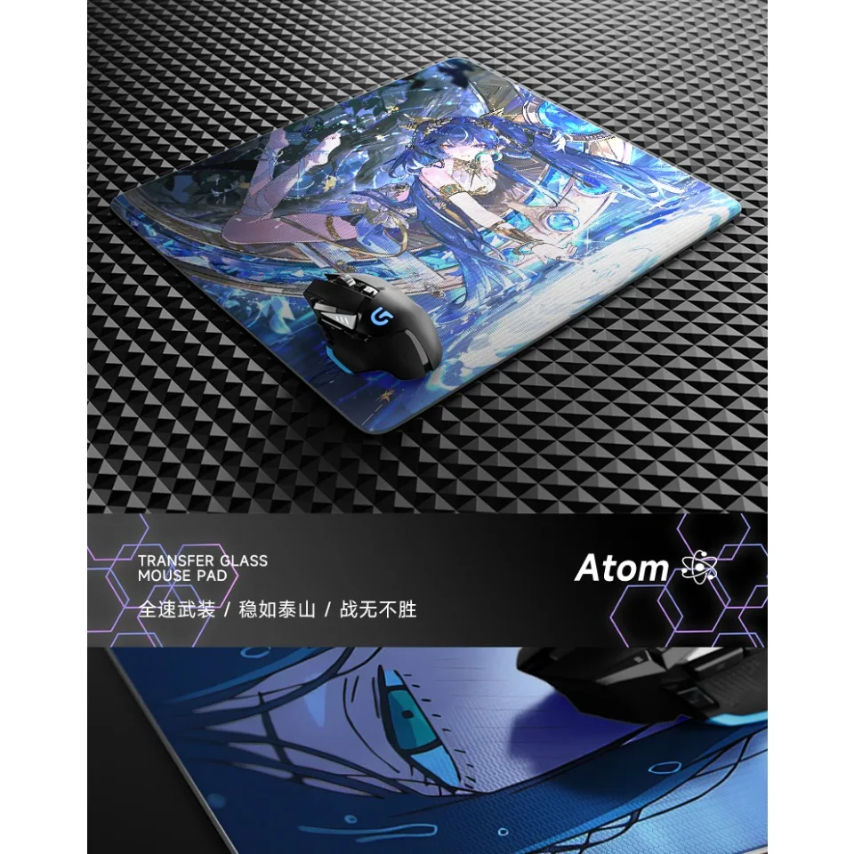 ATOM Tempered Glass Mouse Pads Customized Anime E-Sports Gaming Mats Desk Pad for PC FPS Gaming Mouse Pad Offices Accessories