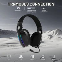 7.1-channel, wired, Bluetooth, 2.4G three-mode headphones, advanced lightseed wireless transmission technology, high performance and low latency: 2.4G link as low as about 20mS, providing gamers with a free space immersive experience.