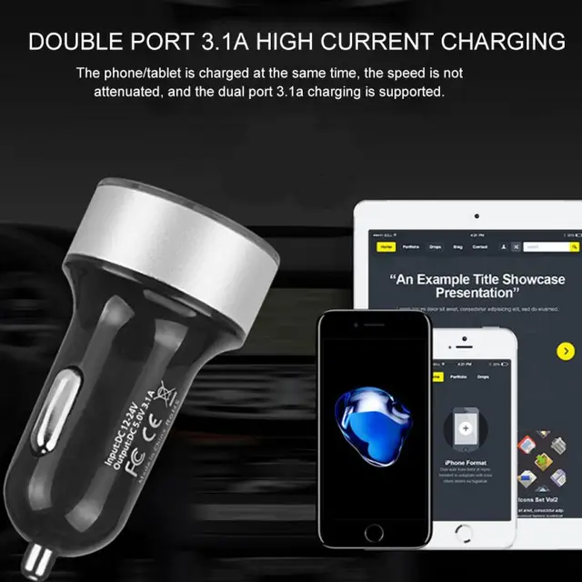 The LED display monitors the car battery voltage in real time (when no device is connected for charging); the charging current is displayed when the phone is charging