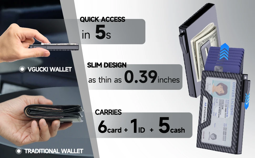 [Credit Card Wallet for Men] This credit card holder for men holds 1-12 cards, the aluminum card holder holds up to 6 embossed cards (letter cards) or 9 smooth cards (depending on the number of embossed cards), and the expandable back panel is designed to add storage space for your extra cards. Actual capacity depends on card thickness.
