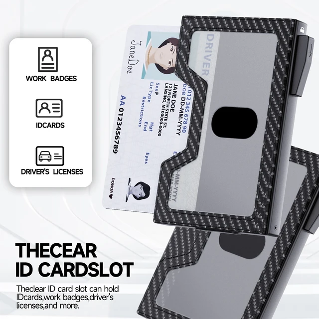[Credit Card Wallet for Men] This credit card holder for men holds 1-12 cards, the aluminum card holder holds up to 6 embossed cards (letter cards) or 9 smooth cards (depending on the number of embossed cards), and the expandable back panel is designed to add storage space for your extra cards. Actual capacity depends on card thickness.