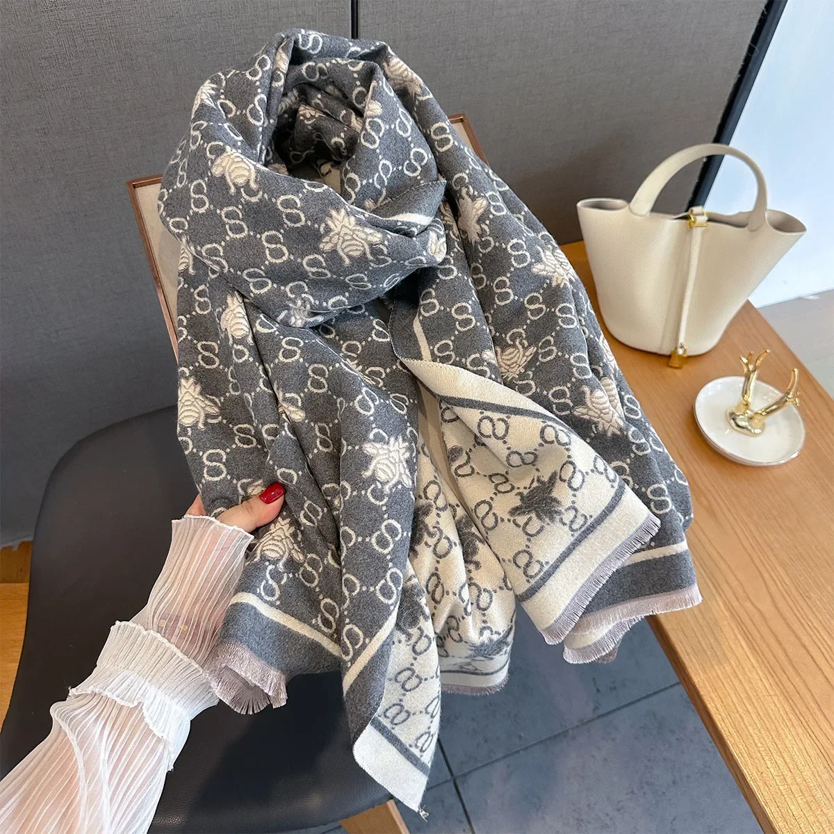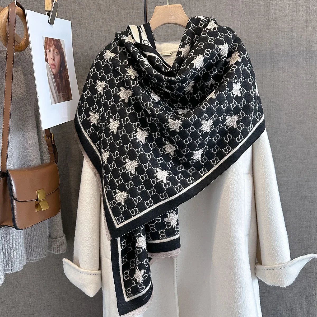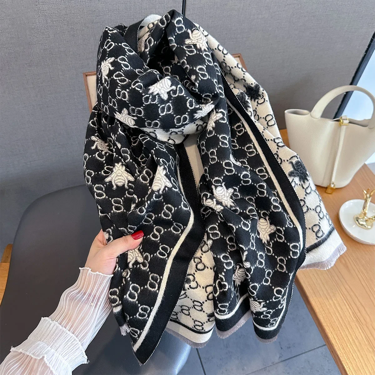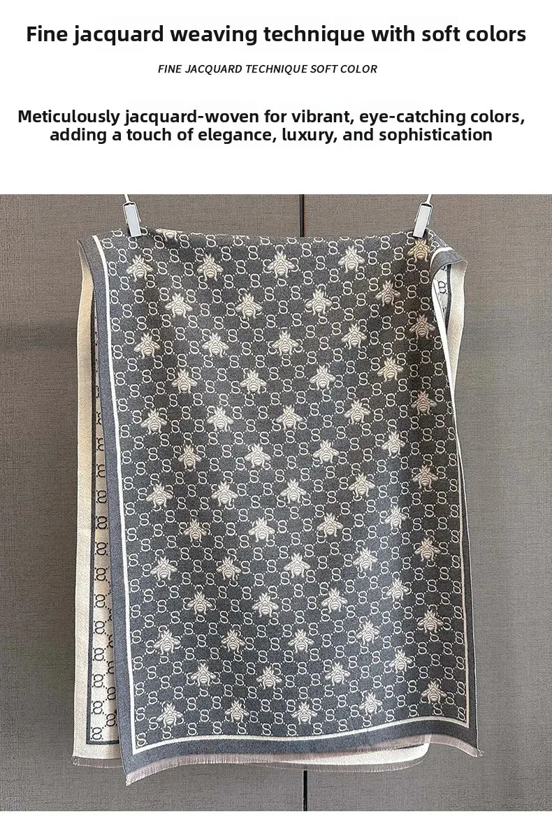 • Bee Jacquard Design : Featuring a sophisticated bee jacquard pattern, this scarf adds a touch of elegance to any outfit.