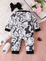 AYNIGIELL Autumn Newborn Butterfly Coat Thickened Warm Jumpsuit 0-6 Months Baby Cartoon Animal Pattern Pure Cotton Baby Outfit