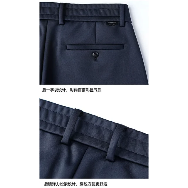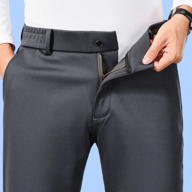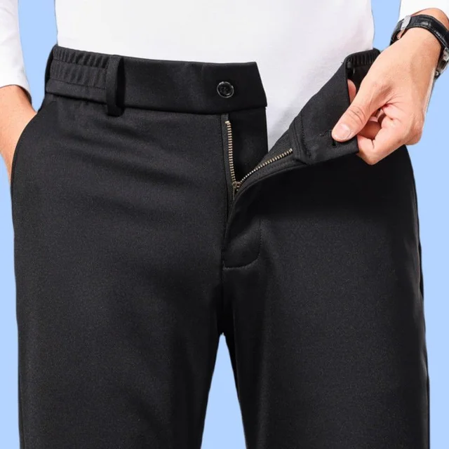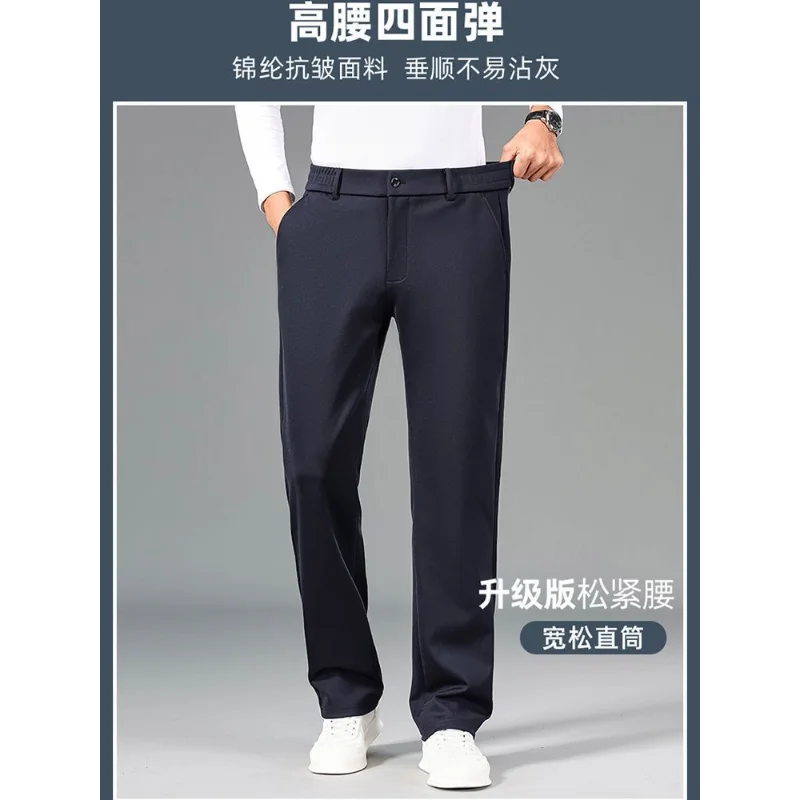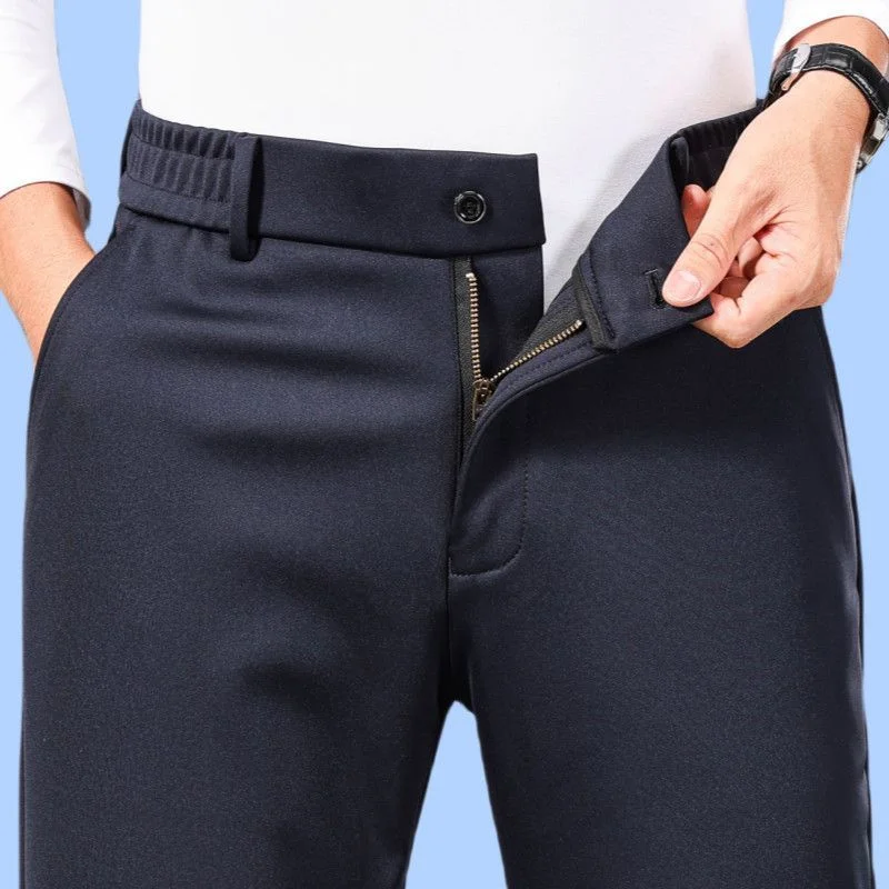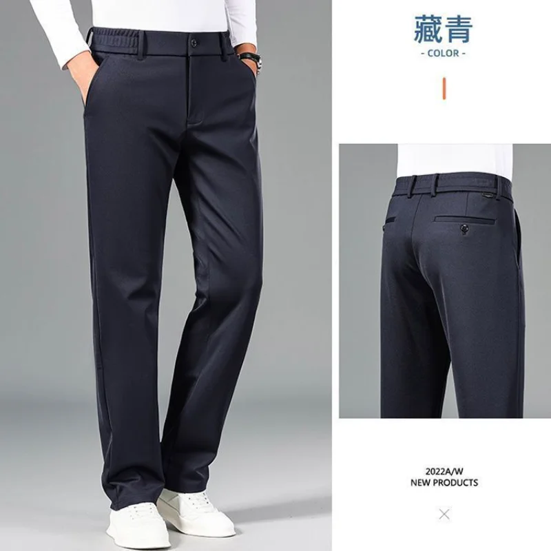 Thi Woolen Velvet Men's Busin Casual Straight Leg Pants Anti-Wrinkle Iron-Free Autumn Winter Long Trousers