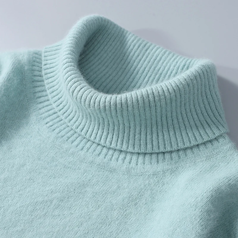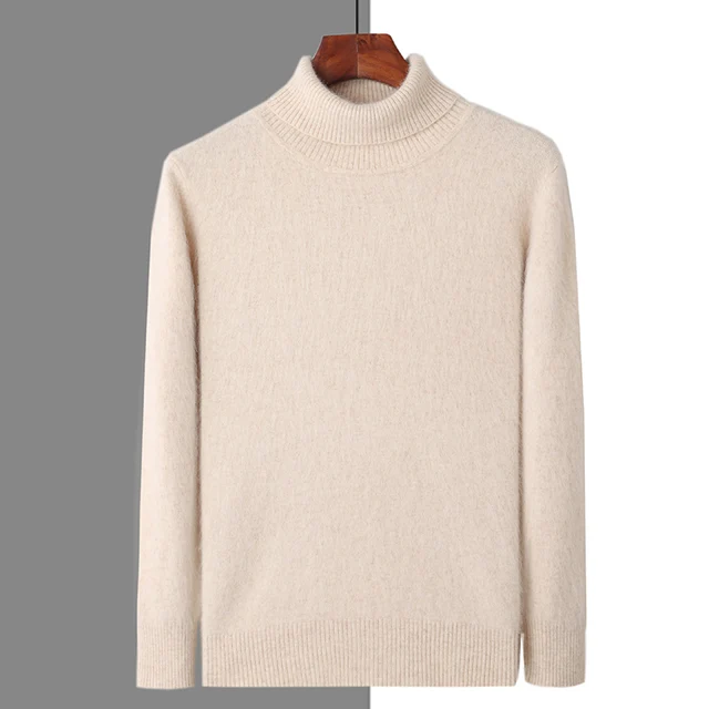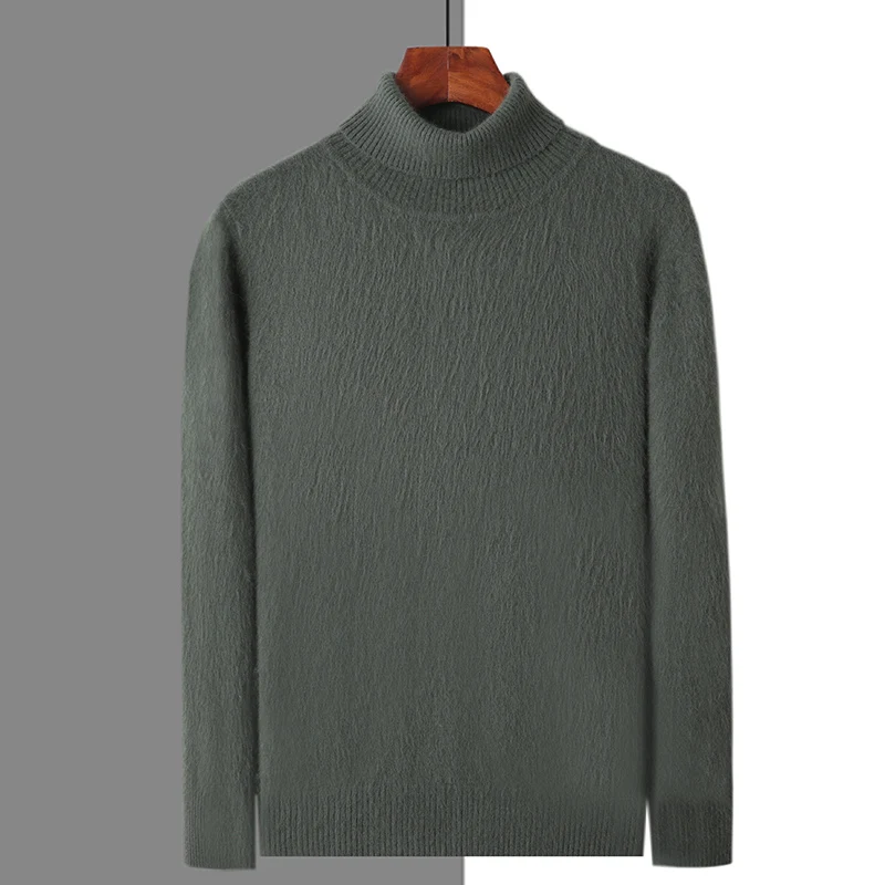 Autumn and Winter Men Loose Turtleneck 100% Mink Cashmere Sweater Men’s Casual Thermal Pullover