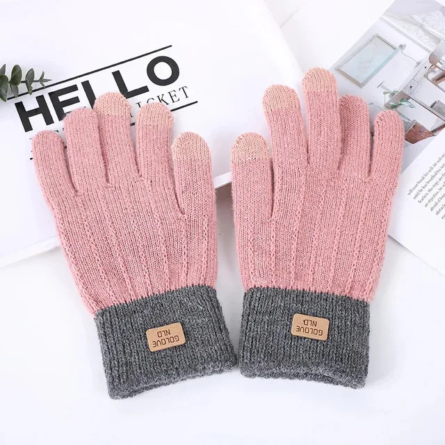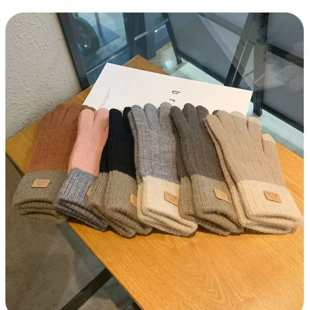 Autumn and Winter, Thick Knitted Alpaca Wool, Korean Students Can Touch the Screen, Warm and Cold Gloves