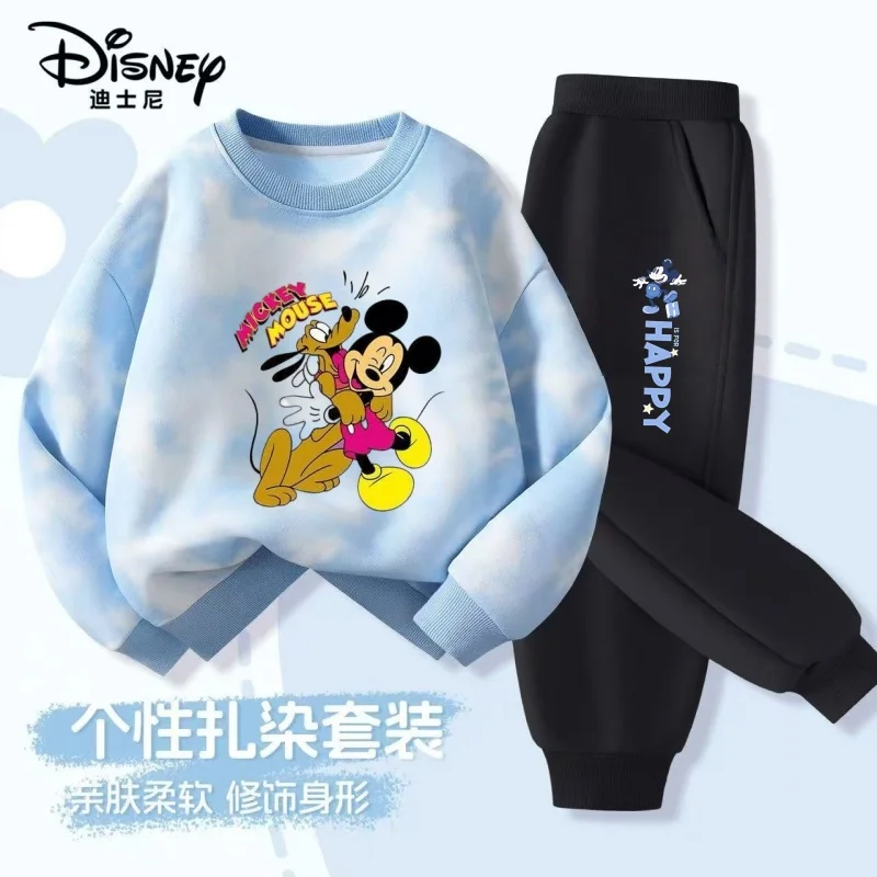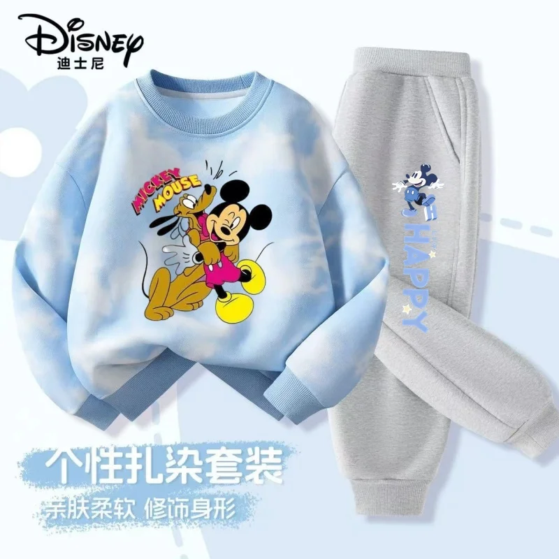 Autumn Baby Girl Boy Clothes Set Children Disney Family Printing Tie-Dye Top and Pants Bottom 2 Pieces Kid Suit Cotton Tracksuit