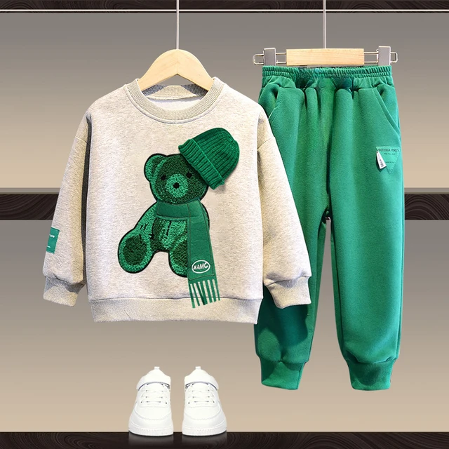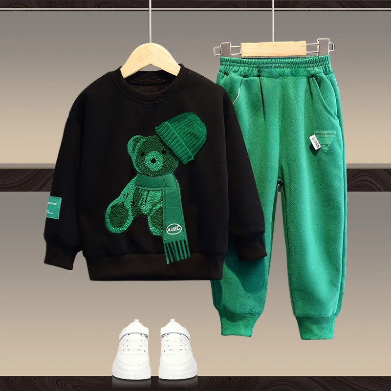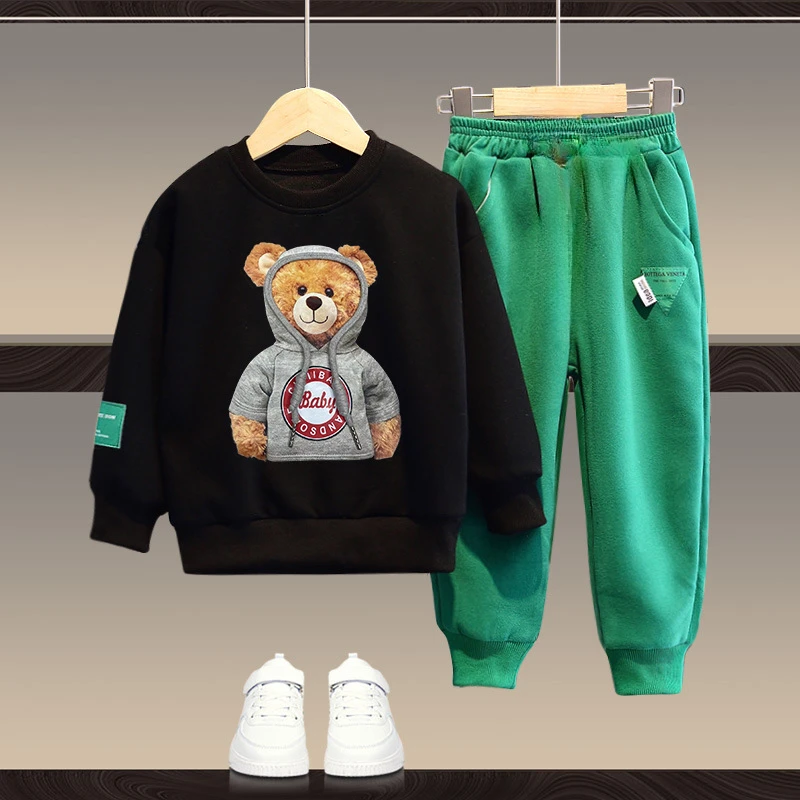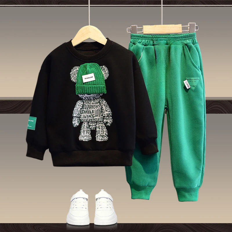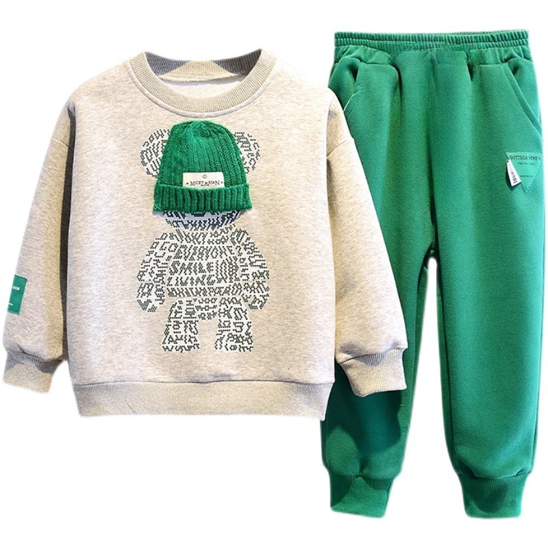 Autumn Winter Letter Graphic Print Children Hooded+pant Suit Tracksuit Kid Casua Sweatshirt Boys Girls Fleece Sport Hoodie Set