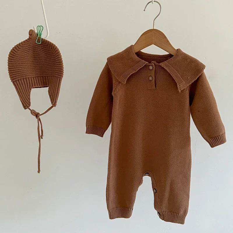 Autumn Baby Rompers Caps Clothes Sets Newborn Girl Boy Knitted