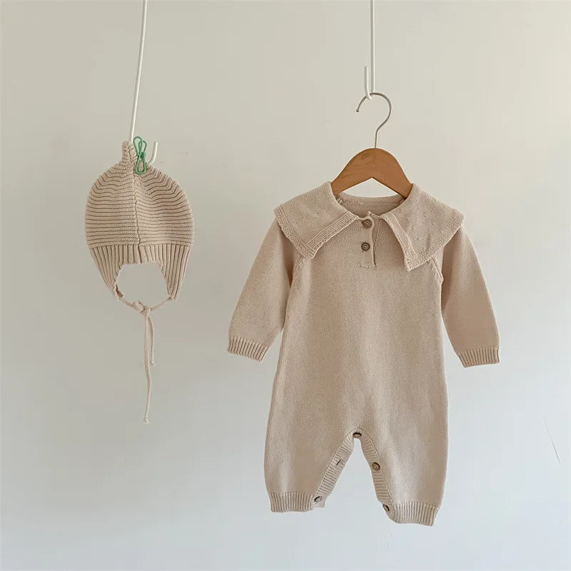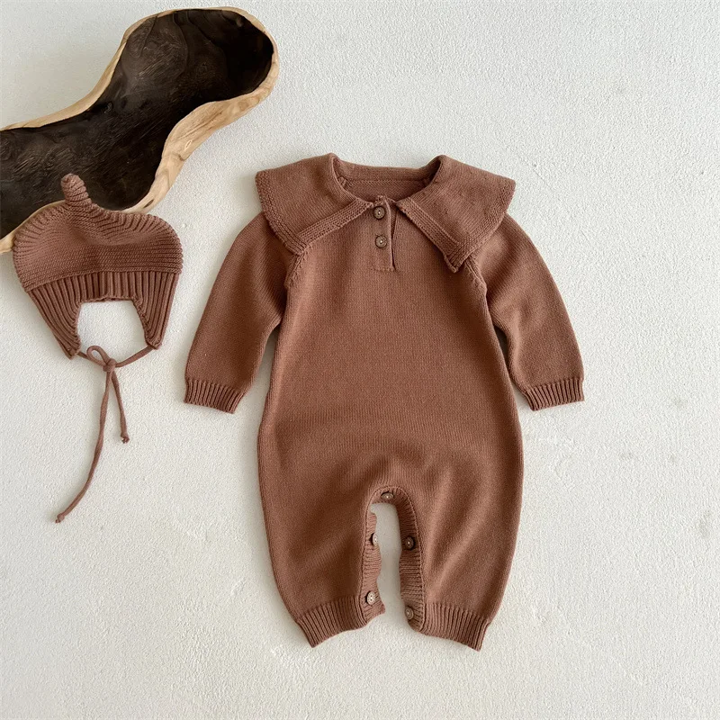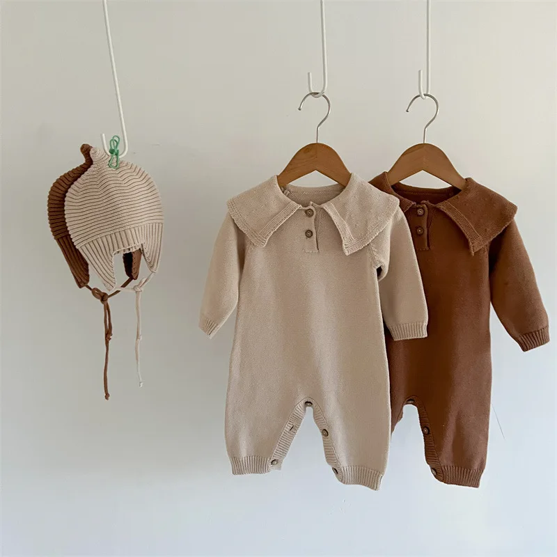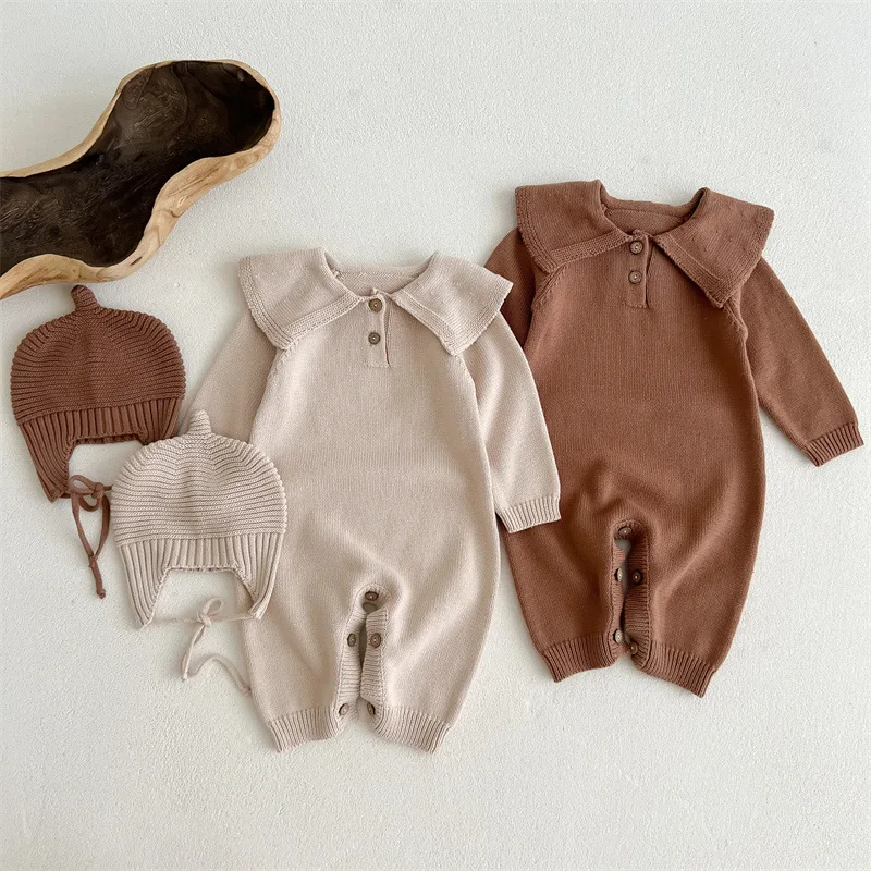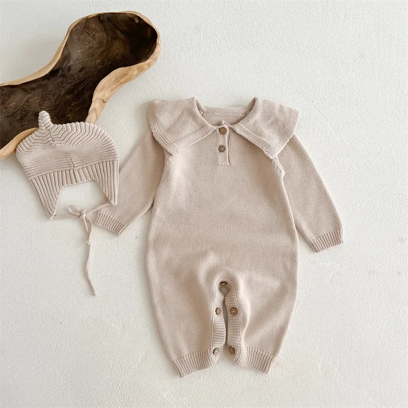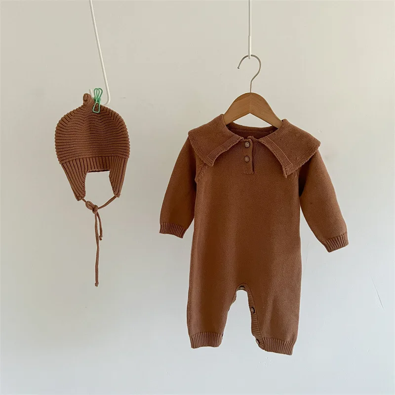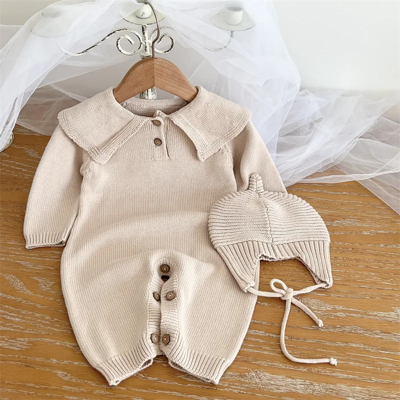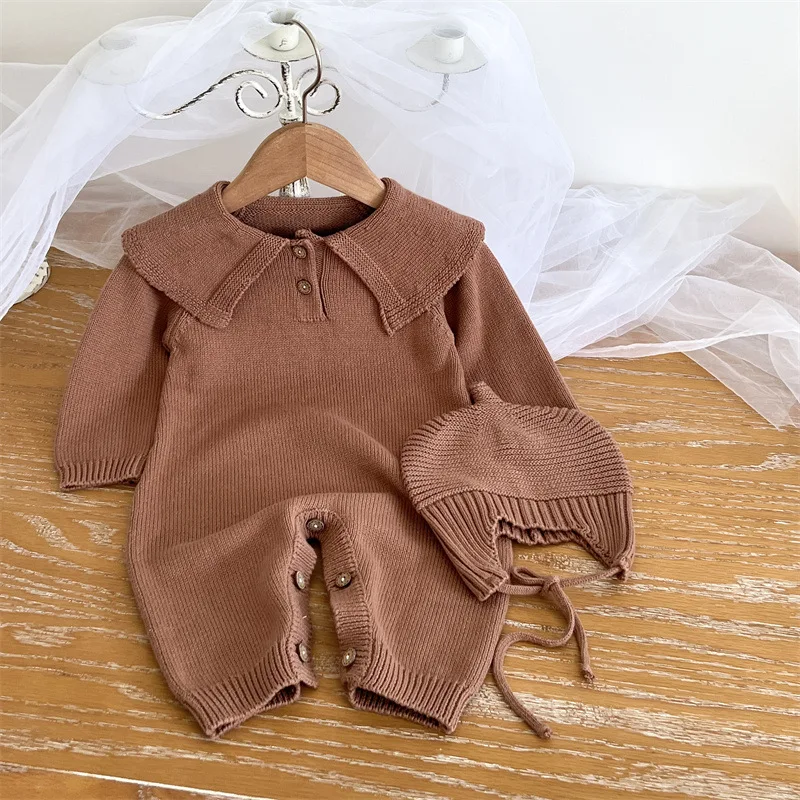 Autumn Baby Rompers Caps Clothes Sets Newborn Girl Boy Knitted