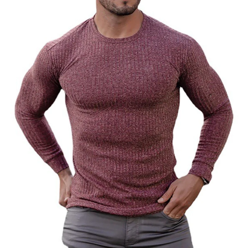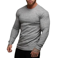 Autumn Breathable Knitted Long Sleeve Shirt Men Fitness Sport Stripe Slim Fit Clothing Gym Bodybuilding